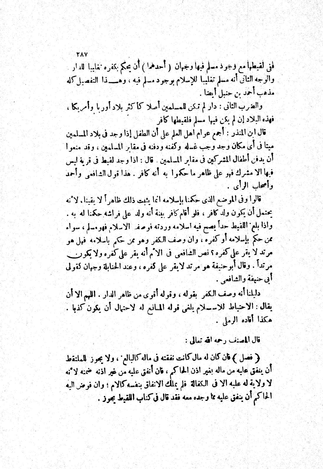 والوجه الثاني أنه مسلم تغليبا للاسلام بوجود مسلم فيه، وهذا التفصيل كله مذهب أحمد بن حنبل أيضا.