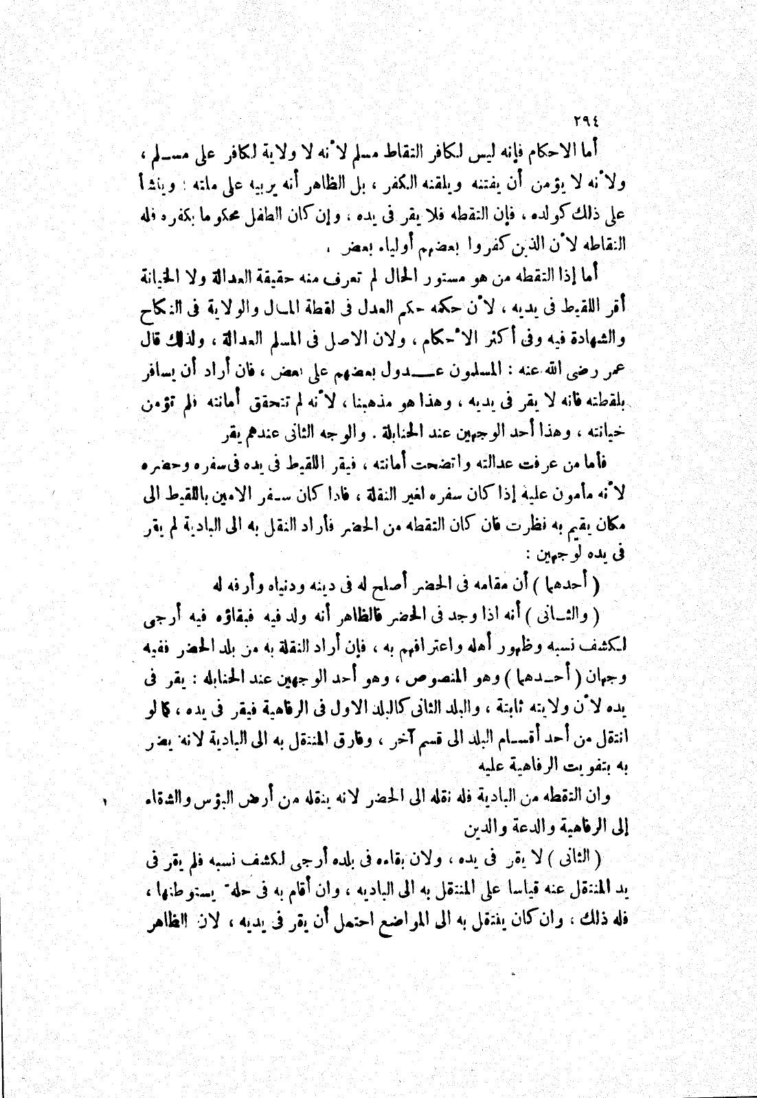 أما الاحكام فإنه ليس لكافر التقاط مسلم لانه لا ولاية لكافر على مسلم، ولانه لا يؤمن أن يفتنه ويلقنه الكفر، بل الظاهر أنه يربيه على ملته وينشأ على ذلك كولده، فإن التقطه فلا يقر في يده، وإن كان الطفل محكوما بكفره فله التقاطه لان الذين كفروا بعضهم أولياء بعض.