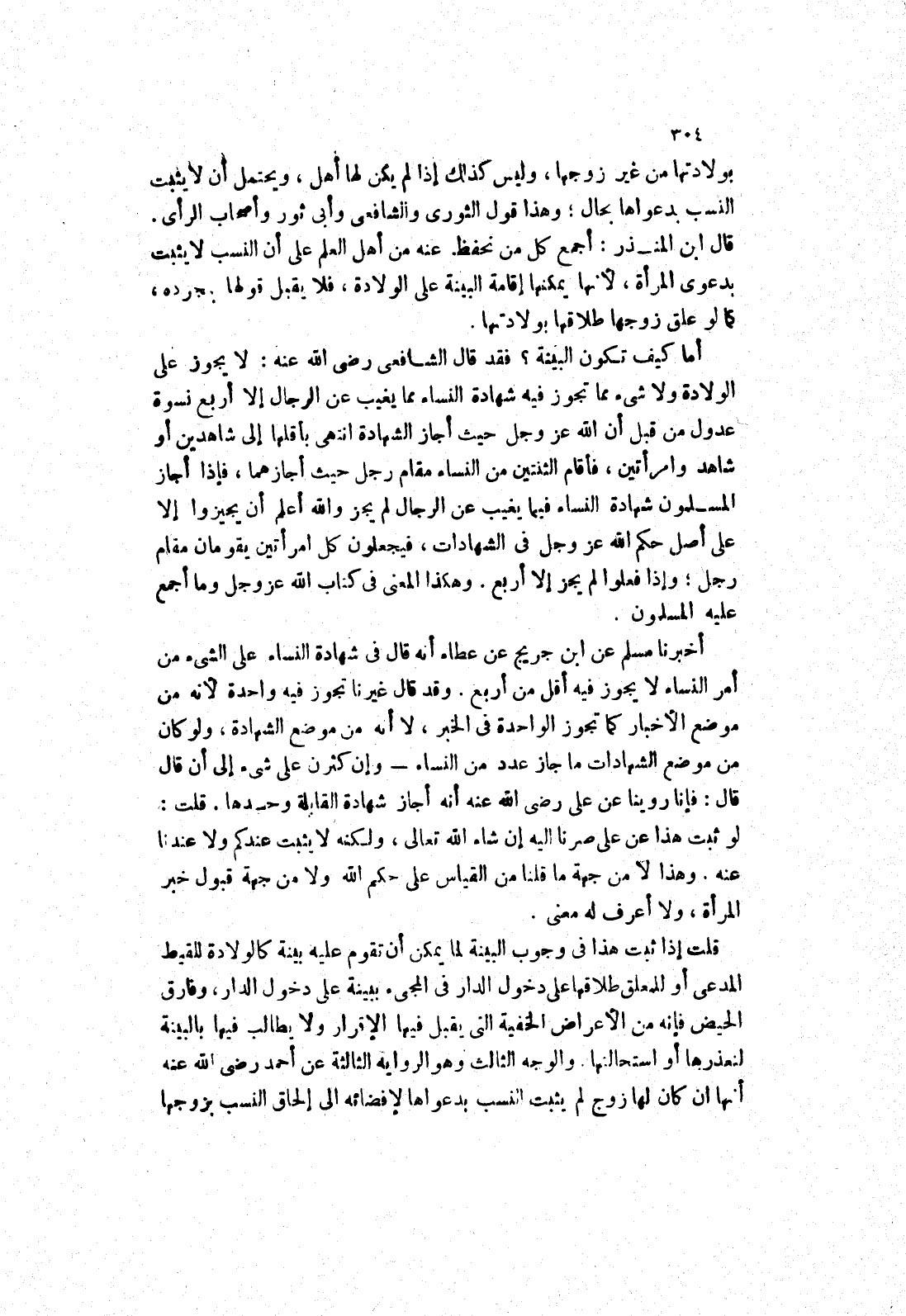 شاهد وامرأتين، فأقام الثنتين من النساء مقام رجل حيث أجازهما، فإذا أجاز المسلمون شهادة النساء فيما يغيب عن الرجال لم يجز والله أعلم ان يجيزوا إلا على أصل حكم الله عز وجل في الشهادات، فيجعلون كل امرأتين يقومان مقام رجل، وإذا فعلوا لم يجز إلا أربع.