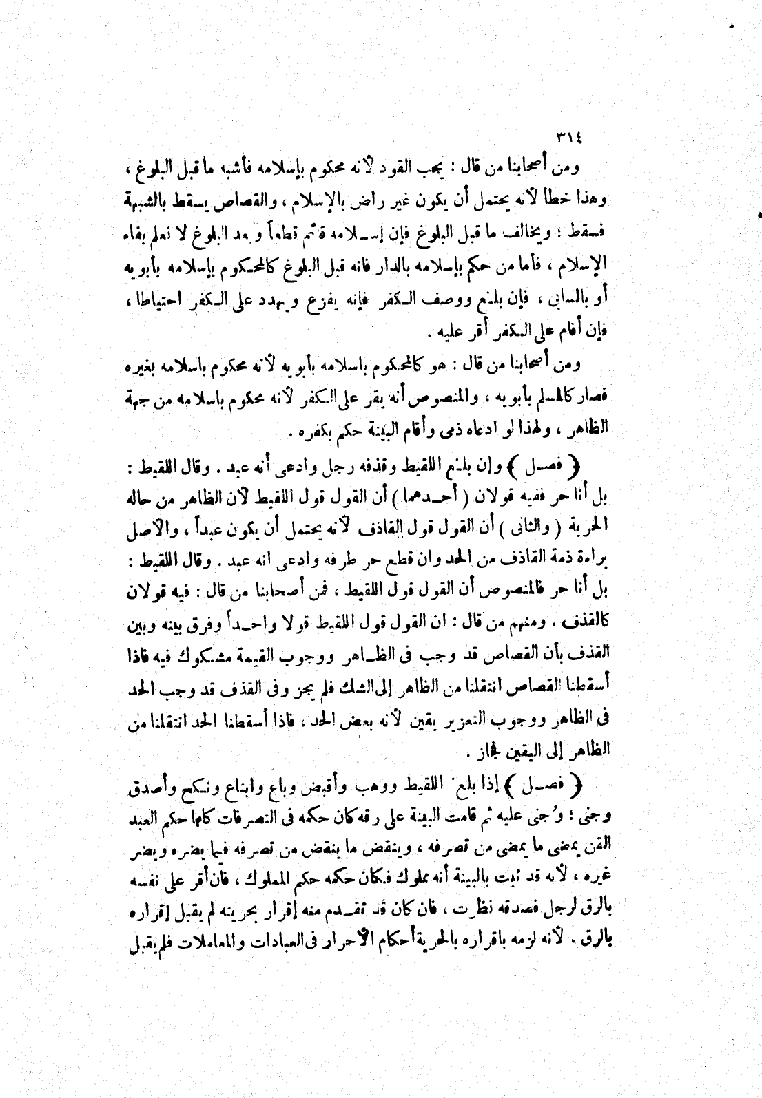ومن أصحابنا من قال: يجب القود لانه محكوم بإسلامه فأشبه ما قبل البلوغ، وهذا خطأ لانه يحتمل أن يكون غير راض بالاسلام، والقصاص يسقط بالشبهة فسقط، ويخالف ما قبل البلوغ فإن إسلامه قائم قطعا وبعد البلوغ لا نعلم بقاء الاسلام، فأما من حكم بإسلامه بالدار فانه قبل البلوغ كالمحكوم بإسلامه بأبويه أو بالسابي، فإن بلغ ووصف الكفر فإنه يفزع ويهدد على الكفر احتياطا، فإن أقام على الكفر أقر عليه.