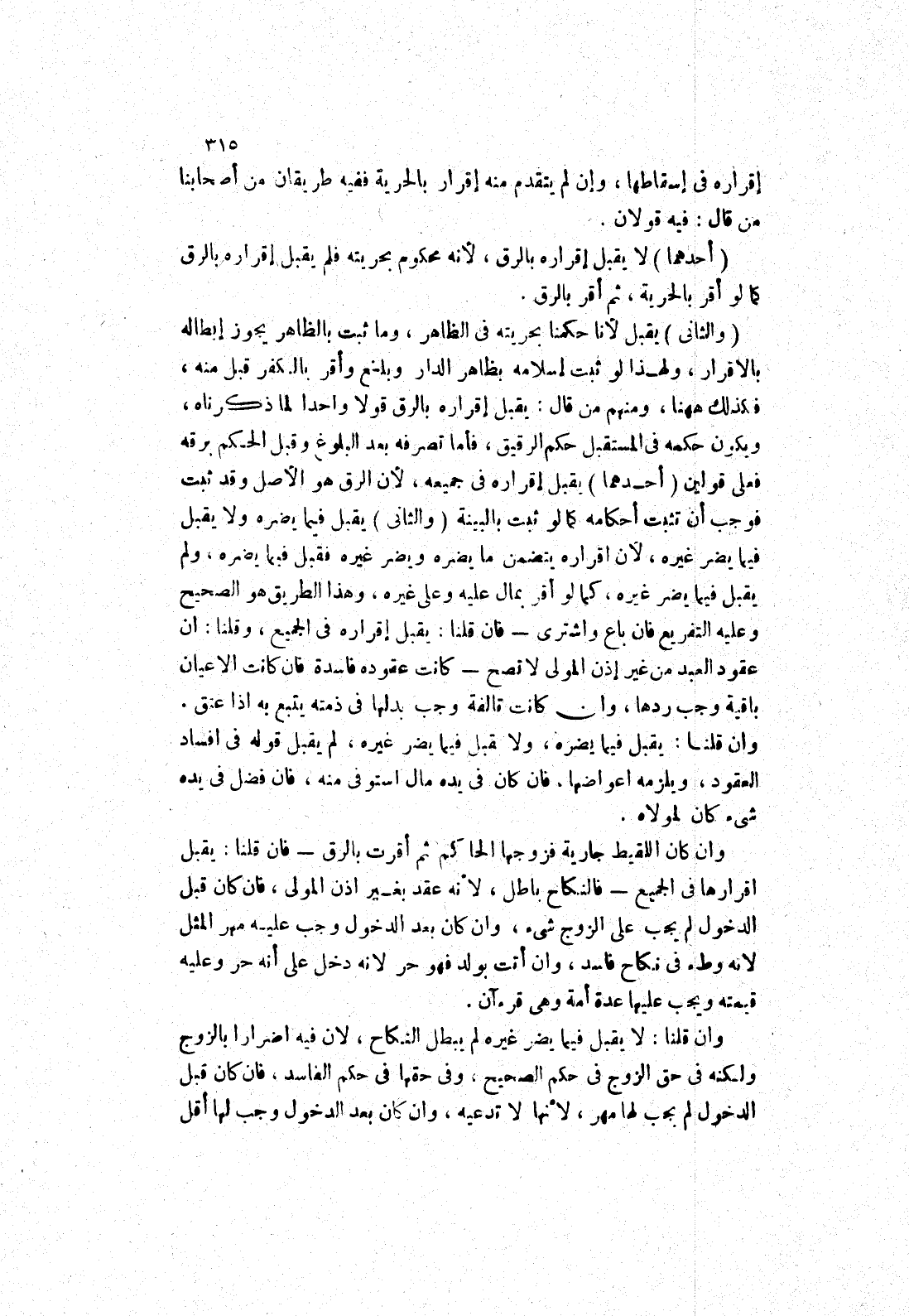 يقبل لانا حكمنا بحريته في الظاهر، وما ثبت بالظاهر يجوز إبطاله بالاقرار، ولهذا لو ثبت إسلامه بظاهر الدار وبلغ وأقر بالكفر قبل منه، فكذلك ههنا، ومنهم من قال: يقبل إقراره بالرق قولا واحدا لما ذكرناه، ويكون حكمه في المستقبل حكم الرقيق، فأما تصرفه بعد البلوغ وقبل الحكم برقه فعلى قولين