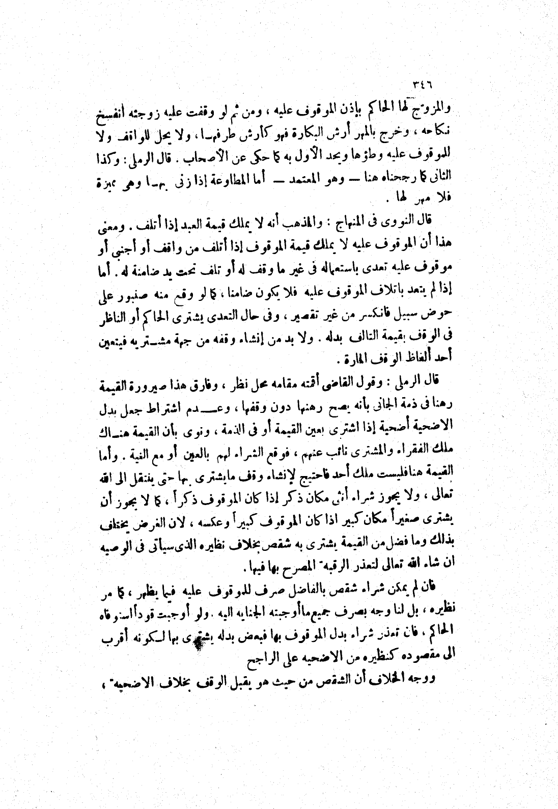 قال الرملي: وقول القاضى اقمته مقامه محل نظر، وفارق هذا صيرورة القيمة رهنا في ذمة الجاني بأنه يصح رهنها دون وقفها، وعدم اشتراط جعل بدل الاضحية أضحية إذا اشترى بعين القيمه أو في الذمة، ونوى بأن القمة هناك ملك الفقراء والمشترى نائب عنهم، فوقع الشراء لهم بالعين أو مع النية.