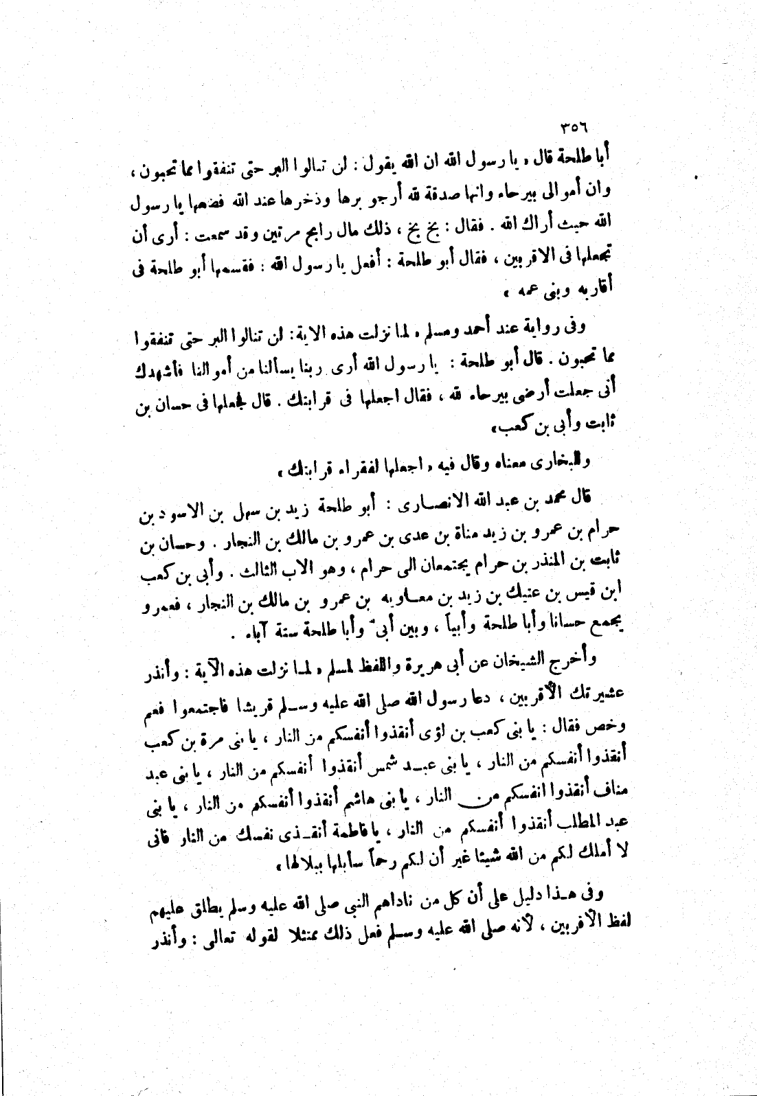 فقال: بخ بخ، ذلك مال رابح مرتين وقد سمعت: أرى أن تجعلها في الاقربين، فقال أبو طلحة: أفعل يا رسول الله: فقسمهما أبو طلحة في أقاربه وبنى عمه) وفى رواية عند أحمد ومسلم (لما نزلت هذه الآية: لَنْ تَنَالُوا الْبِرَّ حَتَّى تُنْفِقُوا مِمَّا تُحِبُّونَ.