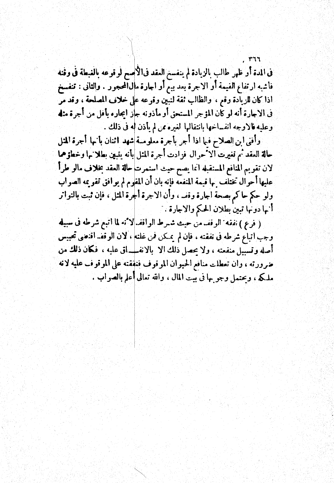 وأفتى ابن الصلاح فيما إذا أجر بأجرة معلومة شهد اثنان بأنها أجرة المثل حالة العقد ثم تغيرت الاحوال فزادت أجرة المثل بأنه يتبين بطلانها وخطؤهما لان تقويم المنافع المستقبله انما يصح حيث استمرت حالة العقد بخلاف ما لو طرأ عليها أحوال تختلف بها قيمة المنفعة فإنه بان أن المقوم لم يوافق تقويمه الصواب ولو حكم حاكم بصحة اجارة وقف، وان الاجرة وقف، وأن الاجرة أجرة المثل، فإن ثبت بالتواتر