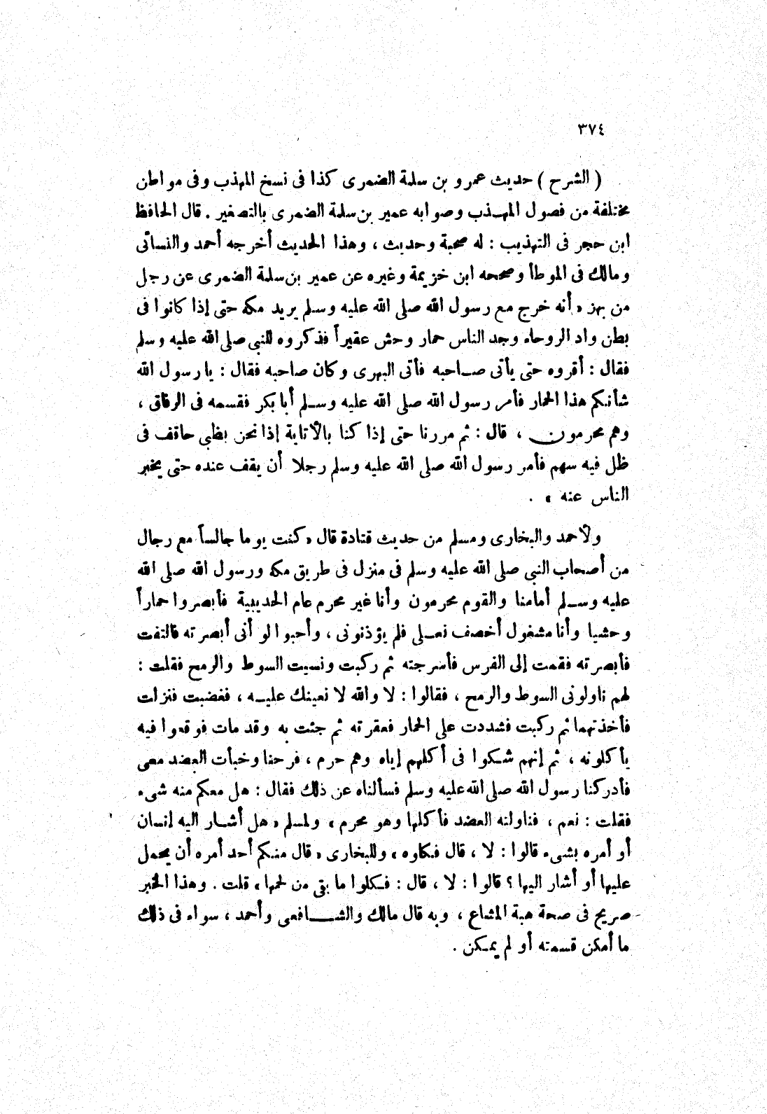 (الشرح) حديث عمرو بن سلمة الضمرى كذا في نسخ المهذب وفى مواطن مختلفة من فصول المهذب وصوابه عمير بن سلمة الضمرى بالتصغير.