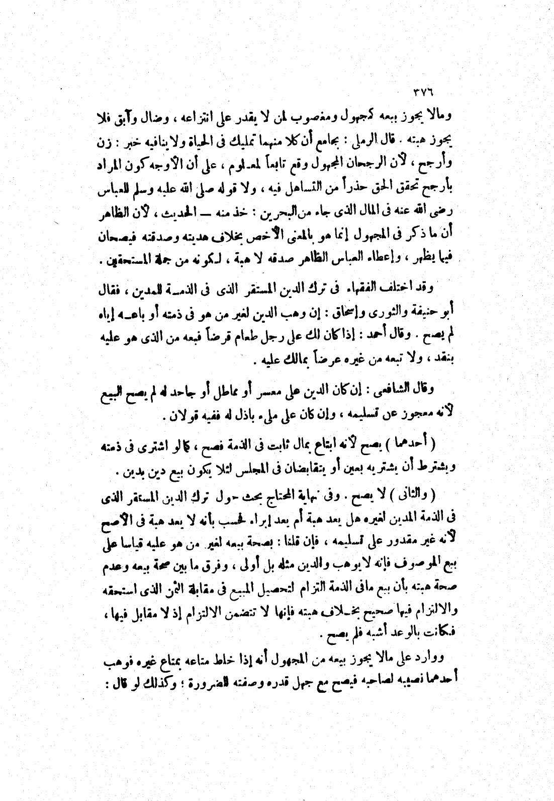 قال الرملي: بجامع أن كلا منهما تمليك في الحياة ولا ينافيه خير: زن وأرجح، لان الرجحان المجهول وقع تابعا لمعلوم، عل أن الاوجه كون المراد بأرجح تحقق الحق حذرا من التساهل فيه، ولا قوله صَلَّى اللَّهُ عَلَيْهِ وَسَلَّمَ لِلْعَبَّاسِ رَضِيَ اللَّهُ عنه في المال الذى جاء من البحرين: خذ منه - الحديث، لان الظاهر أن ما ذكر في المجهول إنما هو بالمعنى الاخص بخلاف هديته وصدقته فيصحان فيما يظهر، واعطاء العباس الظاهر صدقة لا هبة، لكونه من جملة المستحقين.