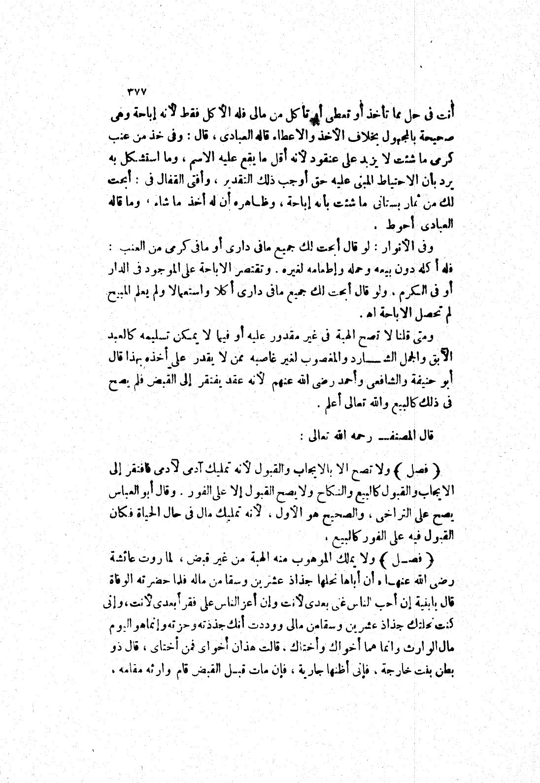 ولا يملك الموهوب منه الهبة من غير قبض، لِمَا رَوَتْ عَائِشَةُ رَضِيَ اللَّهُ عَنْهَا (أَنَّ اباها نحلها جذاذ عشرين وسقا من ماله فلما حضرته الوفاة قال يا بنية ان أحب الناس غنى بعدى لانت وان أعز الناس على فقرا بعدى لانت، وأنى كنت نحلتك جذاذ عشرين وسقا من مالى ووددت انك جذذته وحزته وانما هو اليوم مال الوارث وانما هما اخواك واختاك.