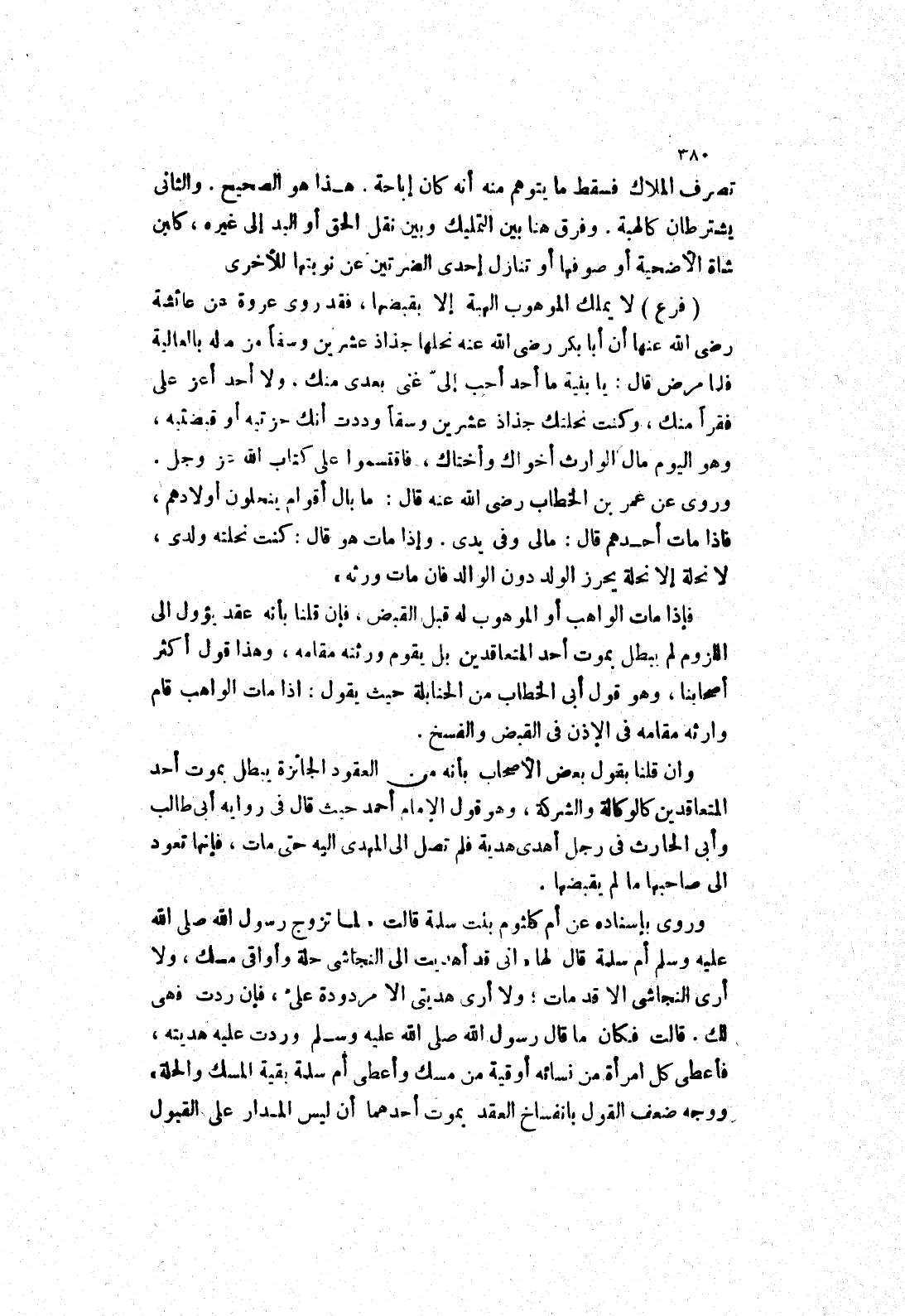 قالت فكان مَا قَالَ رَسُولُ اللَّهِ صَلَّى اللَّهُ عَلَيْهِ وَسَلَّمَ وردت عليه هديته، فاعطى كل امرأة من نسائه أوقية من مسك وأعطى أم سلمة بقية المسك والحلة) ووجه ضعف القول بانفساخ العقد بموت أحدهما أن ليس المدار على القبول