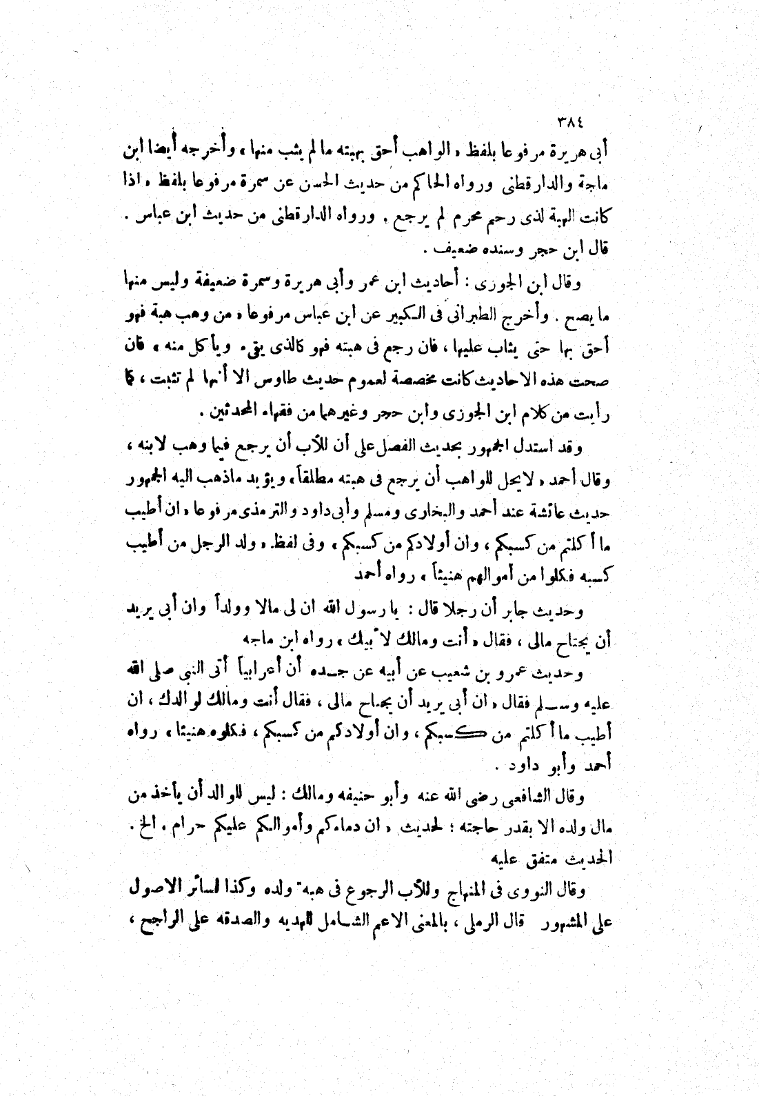 الحديث متفق عليه وقال النووي في المنهاج وللاب الرجوع في هبة ولده وكذا لسائر الاصول على المشهور، قال الرملي، بالمعنى الاعم الشامل للهديه والصدقه على الراجح،