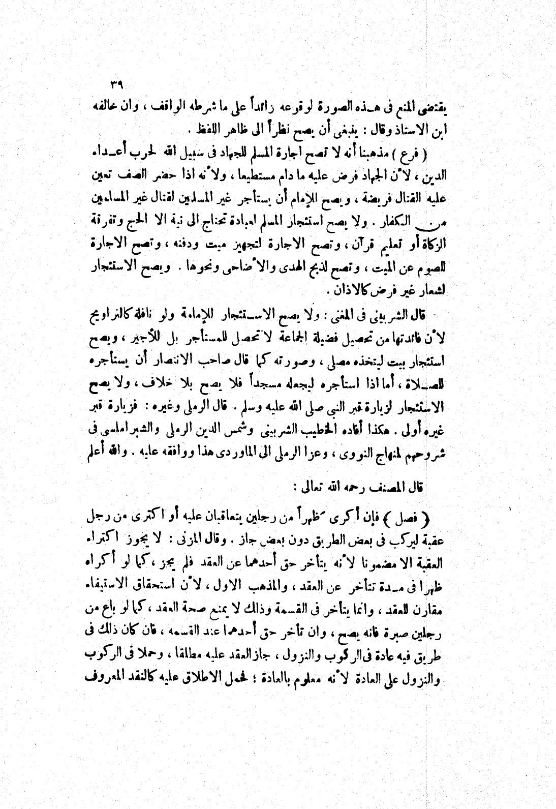 قال الشربينى في المغنى: ولا يصح الاستئجار للامامة ولو نافلة كالتراويح لان فادتها من تحصيل فضيلة الجماعة لا تحصل للمستأجر بل للاجير، ويصح استئجار بيت ليتخذه مصلى، وصورته كما قال صاحب الانتصار ان يستأجره للصلاة، اما إذا استأجره ليجعله مسجدا فلا يصح بلا خلاف، ولا يصح الاستئجار لِزِيَارَةِ قَبْرِ النَّبِيِّ صَلَّى اللَّهُ عَلَيْهِ وَسَلَّمَ.