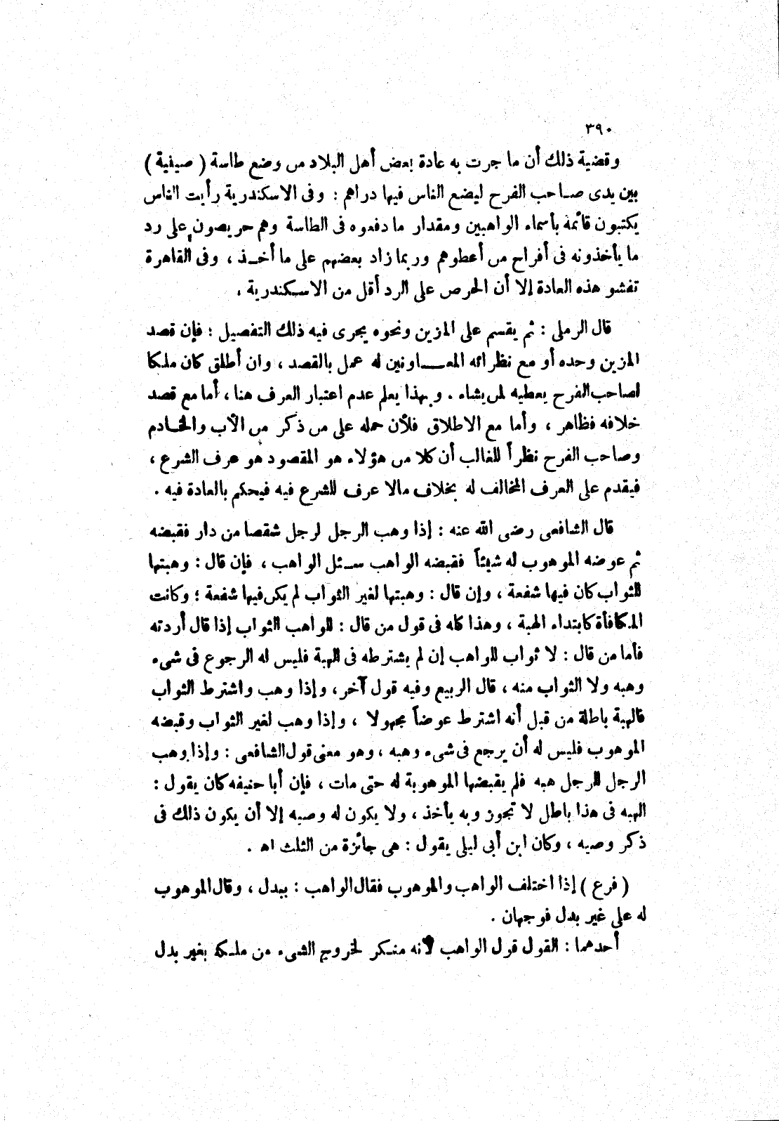 قال الشافعي رضى الله عنه: إذا وهب الرجل شقا من دار فقبضه ثم عوضه الموهوب له شيئا فقبضه الواهب سئل الواهب، فإن قال: وهبتها للثواب كان فيها شفعة، وإن قال: وهبتها لغير الثواب لم يكن فيها شفعة، وكانت المكافأة كابتداء الهبة، وهذا كله في قول من قال: للواهب الثواب إذا قال أردته فأما من قال: لا ثواب للواهب إن لم يشترطه في الهبة فليس له الرجوع في شئ وهبه ولا الثواب منه، قال الربيع وفيه قول آخر، وإذا وهب واشترط الثواب فالهبة باطلة من قبل أنه اشترط عوضا مجهولا، وإذا وهب لغير الثواب وقبضه الموهوب فليس له أن يرجع في شئ وهبه، وهو معنى قول الشافعي: وإذا وهب الرجل للرجل هبه فلم يقبضها الموهبة له حتى مات، فإن أبا حنيفة كا يقول: الهبة في هذا باطل لا تجوز وبه يأخذ، ولا يكون له وصيه إلا أن يكون ذلك في ذكر وصيه، وكان ابن ليلى يقول: هي جائزة من الثلث اه.