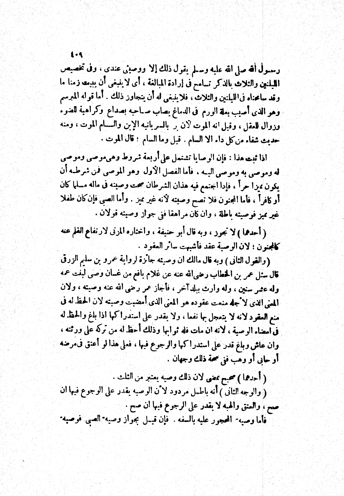 (والقول الثاني) وبه قال مالك ان وصيته جائزة لرواية عمرو بن سليم الزرقى قال سئل عمر بن الخطاب ورضى الله عنه عن غلام يافع من غسان وصى لبنت عمه وله عشر سنين، وله وارث ببلد آخر، فأجاز عمر رضى الله عنه وصيته، ولان المعنى الذى لاجله منعت عقوده هو المعنى الذى أمضيت وصيته لان الحظ له في منع العقود لانه لا يتعجل بها نفعا، ولا يقدر على استدراكها إذا بلغ والحظ له في امضاء الوصية، لانه ان مات فله ثوابها وذلك أحط له من تركه عل ورثته، وان عاش وبلغ قدر على استدراكها والرجوع فيها، فعلى هذا لو أعتق في مرضه أو حابى أو وهب ففى صحة ذلك وجهان.