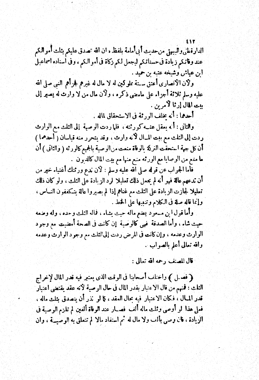 واختلف أصحابنا في الوقت الذى يعتبر فيه قدر المال لاخراج الثلث، فمنهم من قال الاعتبار بقدر المال في حال الوصية لانه عقد يقتضى اعتبار قدر المال، فكان الاعتبار فيه بحال العقد، كما لو نذر أن يتصدق بثلث ماله، فعلى هذا لو أوصى وثلث ماله ألف فصار عند الوفاة ألفين لم تلزم الوصية في الزيادة، فان وصى بألف ولا مال له ثم استفاد مالا لم تتعلف به الوصية وان