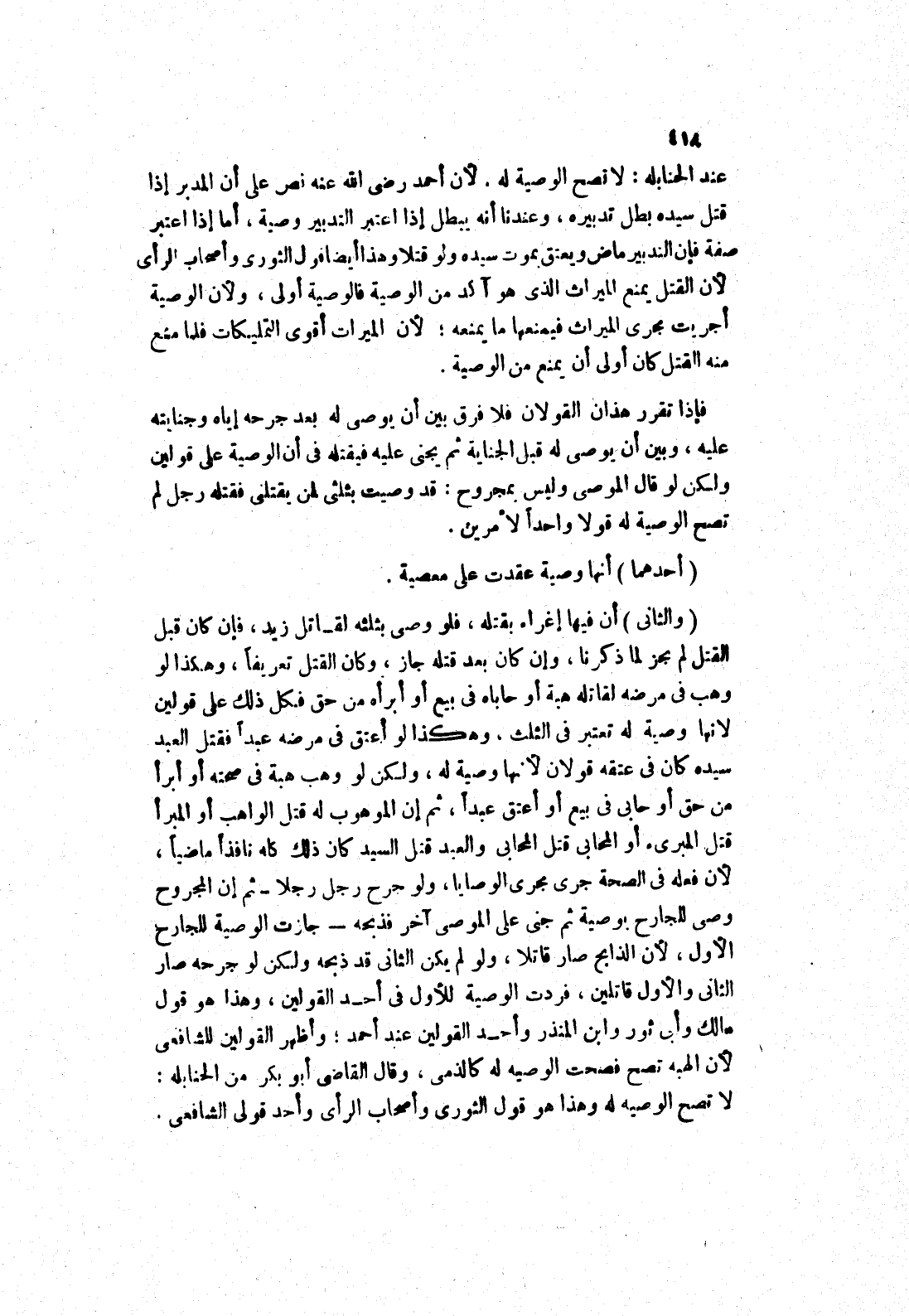 وهب في مرضه لقاتله هبة أو حاباه في بيع أو أبرأه من حق فكل ذلك على قولين لانها وصية له تعتبر في الثلث، وهكذا لو أعتق في مرضه عبدا فقتل العبد سيده كان في عتقه قولان لانها وصية له، ولكن لو وهب هبة في صحته أو أبرأ من حق أو حابى في بيع أو أعتق عبدا، ثم إن الموهوب له قتل الواهب أو المبرأ قتل المبرئ أو المحابى قتل المحابى والعبد قتل السيد كان ذلك كله نافذا ماضيا، لان فعله في الصحة جرى مجرى الوصايا، ولو جرح رجل رجلا ثم إن المجروح وصى للجارح بوصية ثم جنى على الموصى آخر فذبحه جازت الوصية للجارح الاول، لان الذابح صار قاتلا، ولو لم يكن الثاني قد ذبحه ولكن لو جرحه صار الثاني والاول قاتلين، فردت الوصية للاول في أحد القولين، وهذا هو قول مالك وأبى ثور وابن المنذر وأحد القولين عند أحمد، وأظهر القولين للشافعي لان الهبة تصح فصحت الوصيه له كالذمي، وقال القاضى أبو بكر من الحنابله: لا تصح الوصيه له وهذا هو قول الثوري وأصحاب الرأى وأحد قولى الشافعي.