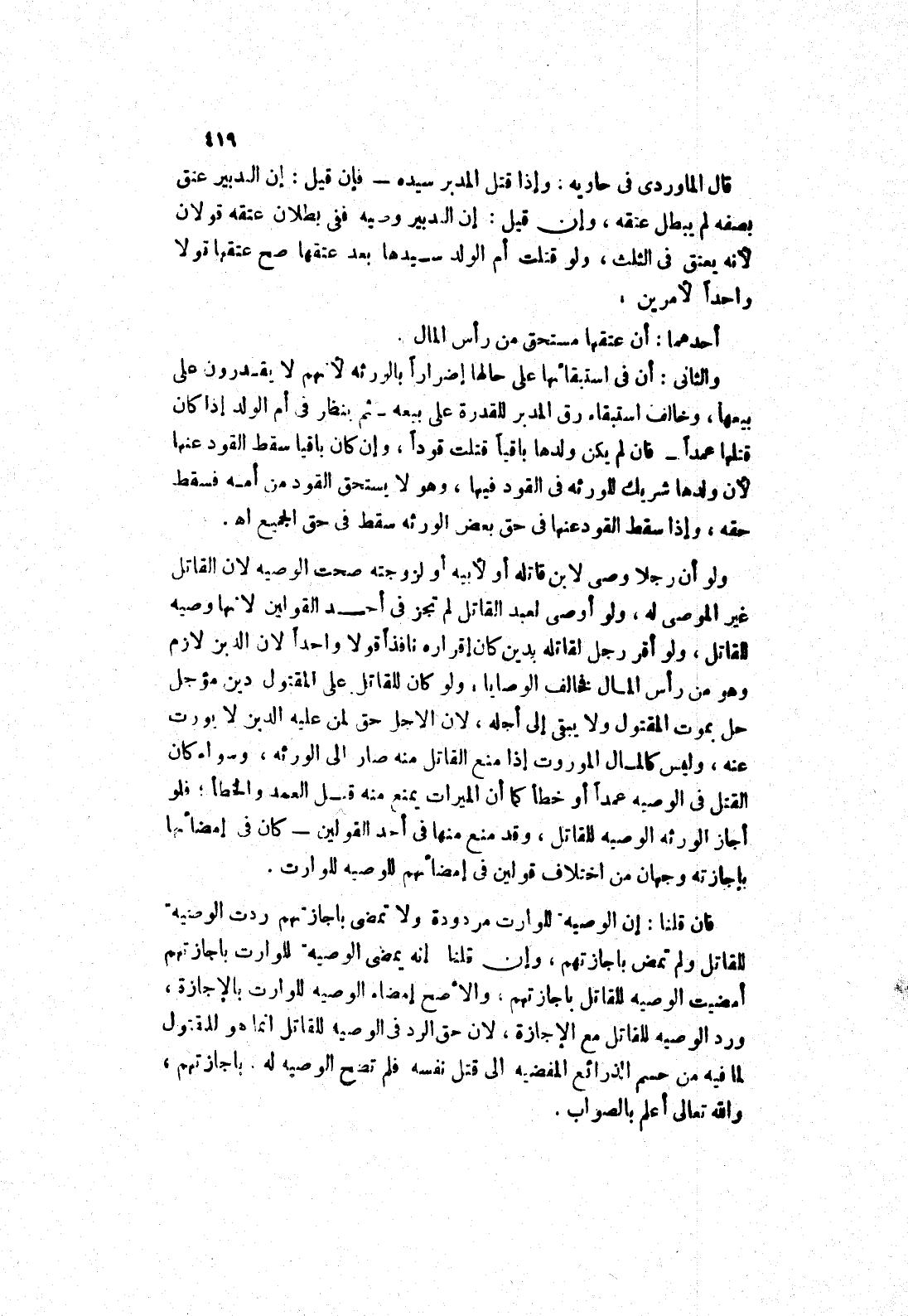 قال الماوردى في حاويه: وإذا قتل المدبر سيده فإن قيل: إن الدبير عتق بصفة لم يبطل عتقه، وإن قيل: إن التدبير وصيه ففى بطلان عتقه قولان لانه يعتق في الثلث، ولو قتلت أم الولد سيدها بعد عتقها صح عتقها قولا واحدا لامرين.