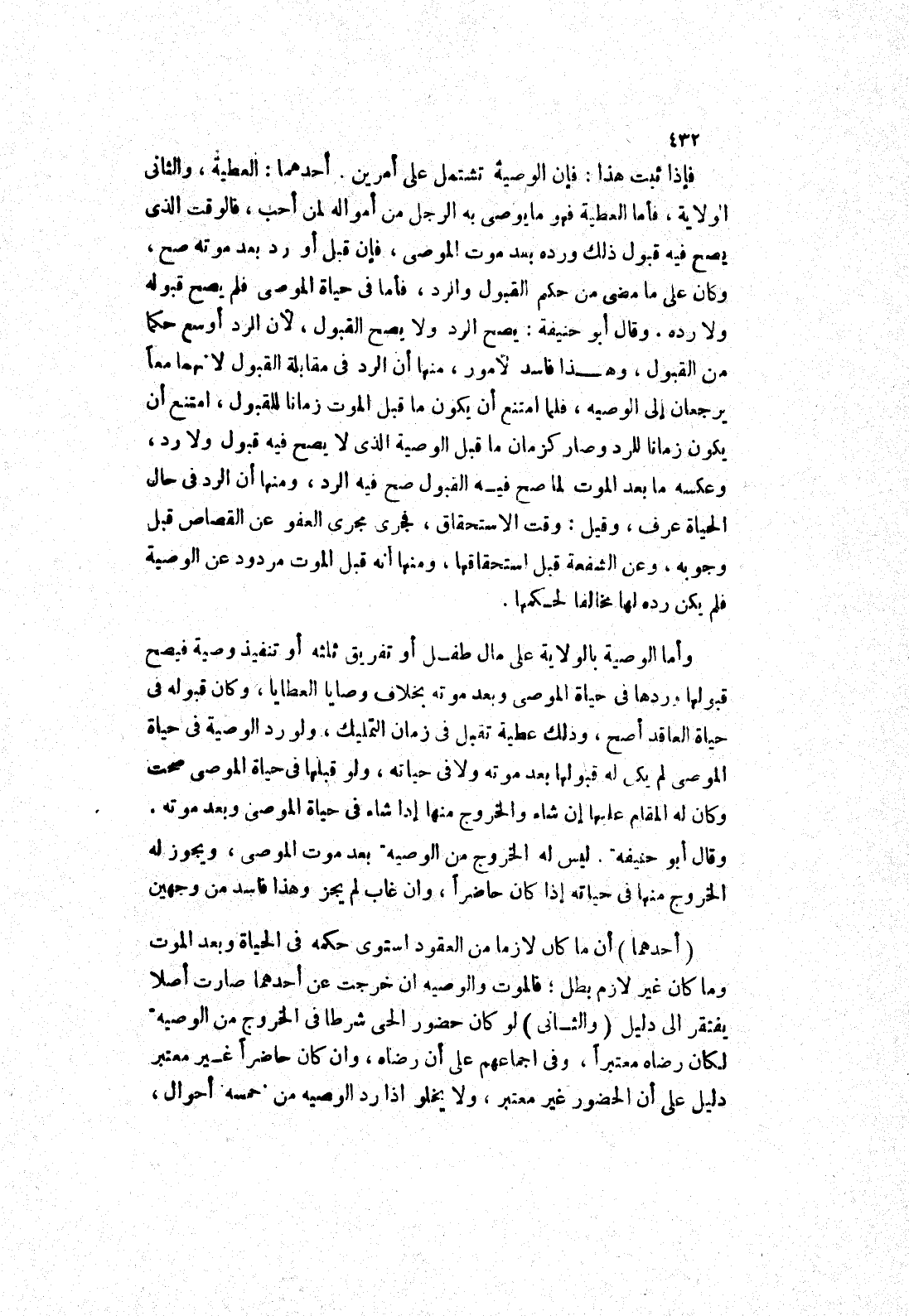وقال أبو حنيفة: يصح الرد ولا يصح القبول، لان الرد أوسع حكما من القبول، وهذا فاسد لامور، منها ان الرد في مقابلة القبول لانهما معا يرجعان إلى الوصية، فلما امتنع أن يكون ما قبل الموت زمانا للقبول، امتنع أن يكون زمانا للرد وصار كزمان ما قبل الوصية الذى لا يصح فيه قبول ولا رد، وعكسه ما بعد الموت لما صح فيه القبول صح فيه الرد، ومنها ان الرد في حال