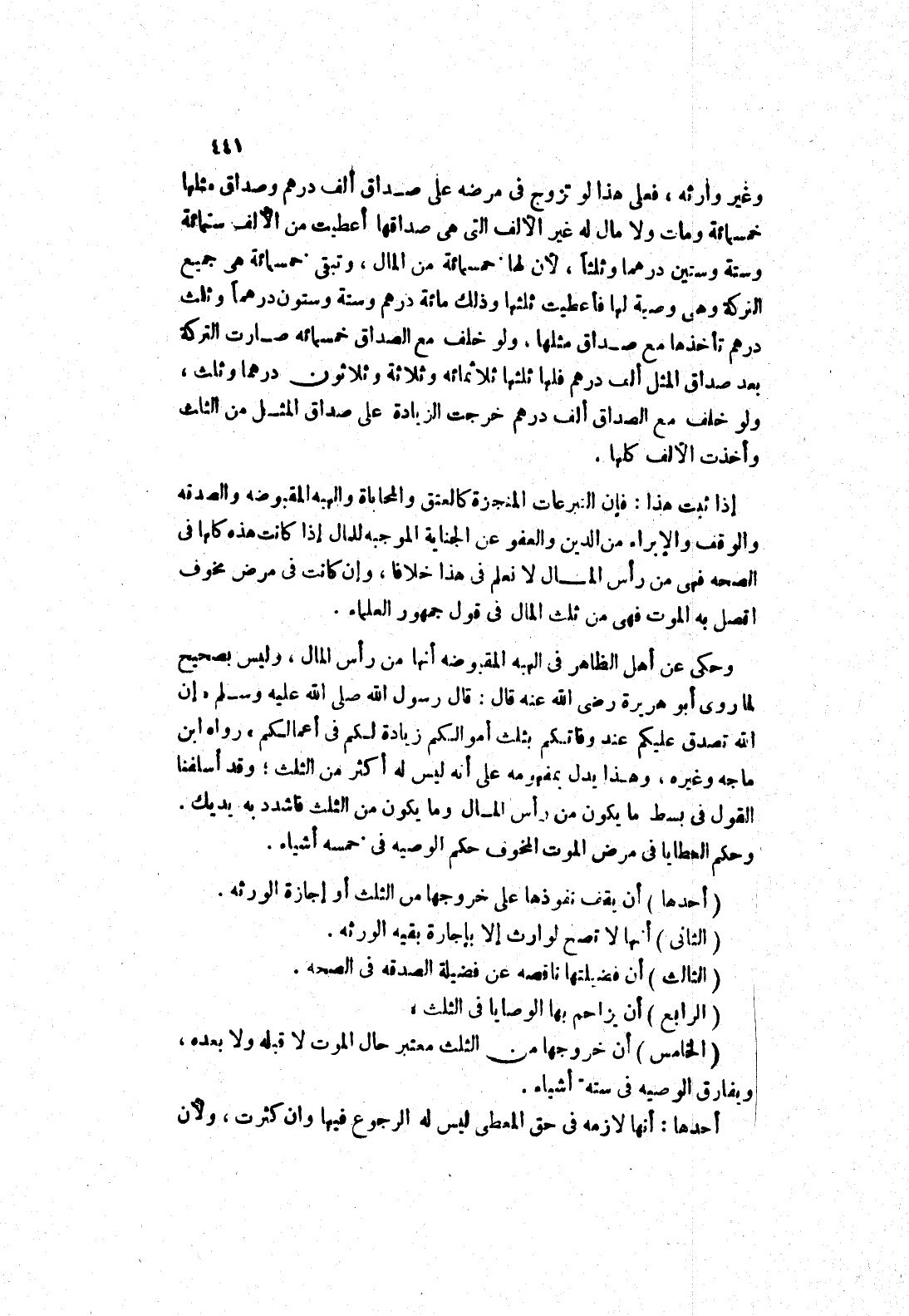 وحكم العطايا في مرض الموت المخوف حكم في خمسه أشياء.