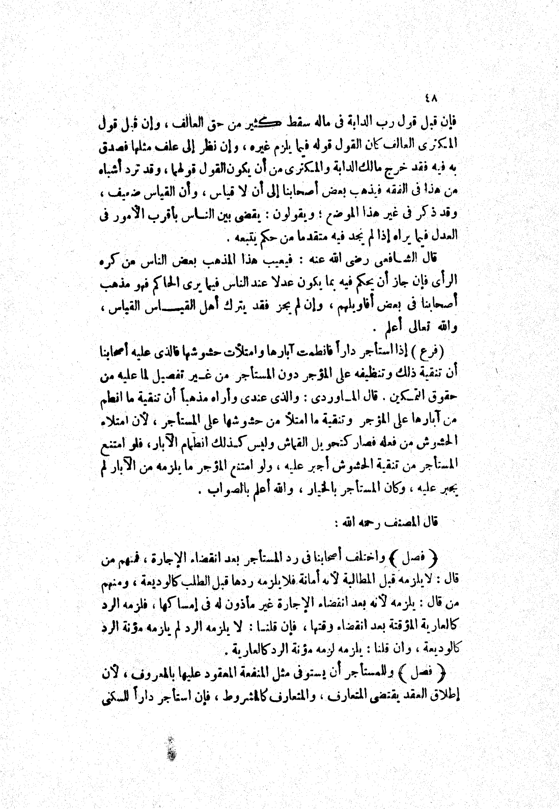 واختلف أصحابنا في رد المستأجر بعد انقضاء الاجارة، فمنهم من قال: لا يلزمه قبل المطالبة لانه أمانة فلا يلزمه ردها قبل الطلب كالوديعة، ومنهم من قال: يلزمه لانه بعد انقضاء الاجارة غير مأذون له في إمساكها، فلزمه الرد كالعارية المؤقتة بعد انقضاء وقتها، فإن قلنا: لا يلزمه الرد لم يلزمه مؤنة الرد كالوديعة، وان قلنا: يلزمه لزمه مؤنة الرد كالعارية.