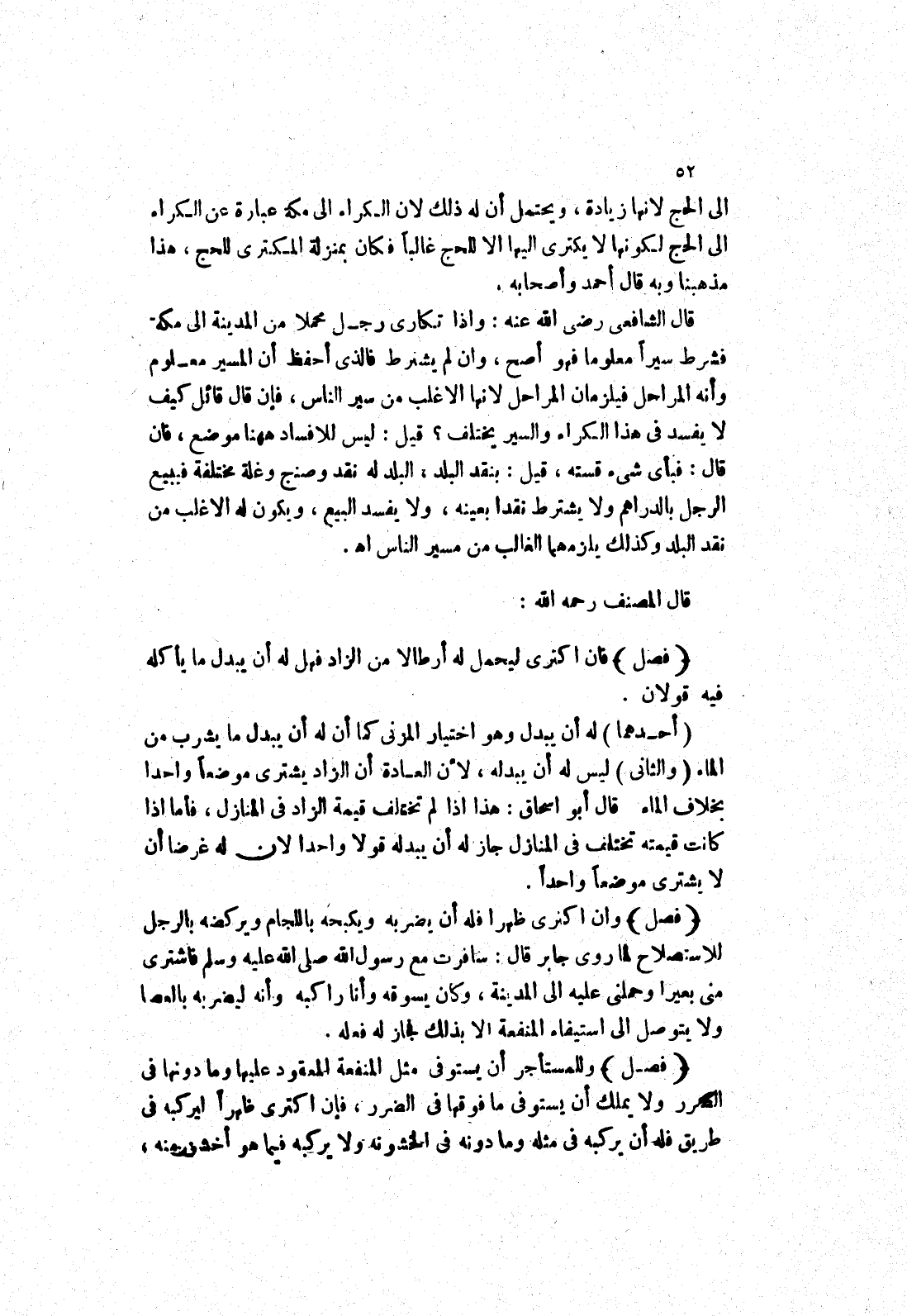 قال الشافعي رضى الله عنه: وإذا تكارى رجل محملا من المدينة إلى مكة فشرط سيرا معلوما فهو أصح، وان لم يشترط فالذي أحفظ أن المسير معلوم وأنه المراحل فيلزمان المراحل لانها الاغلب من سير الناس، فإن قال قائل كيف لا يفسد في هذا الكراء والسير يختلف؟ قيل: ليس للافساد ههنا موضع، فان قال: فبأى شئ قسته، قيل: بنقد البلد، البلد له نقد وصنج وغلة مختلفة فيبيع الرجل بالدراهم ولا يشترط نقدا بعينه، ولا يفسد البيع، ويكون له الاغلب من نقد البلد وكذلك يلزمهما الغالب من مسير الناس اه.