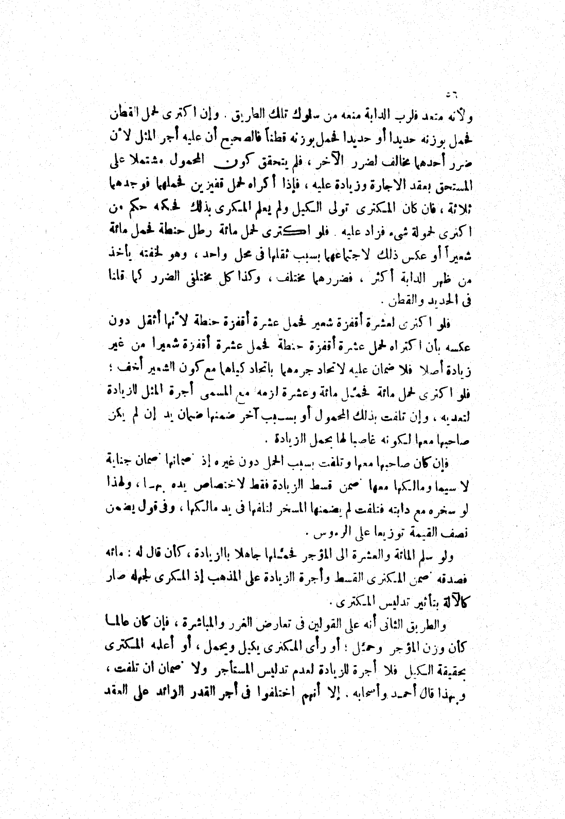 والطريق الثاني أنه على القولين في تعارض الغرر والمباشرة، فان كان عالما كان وزن المؤجر وحمل، أو رأى المكترى يكيل ويحمل، أو أعلمه المكترى بحقيقة الكيل فلا أجرة للزيادة لعدم تدليس المستأجر ولا ضمان إن تلفت، وبهذا قال أحمد وأصحابه، الا أنهم اختلفوا في أجر القدر الزائد على العقد