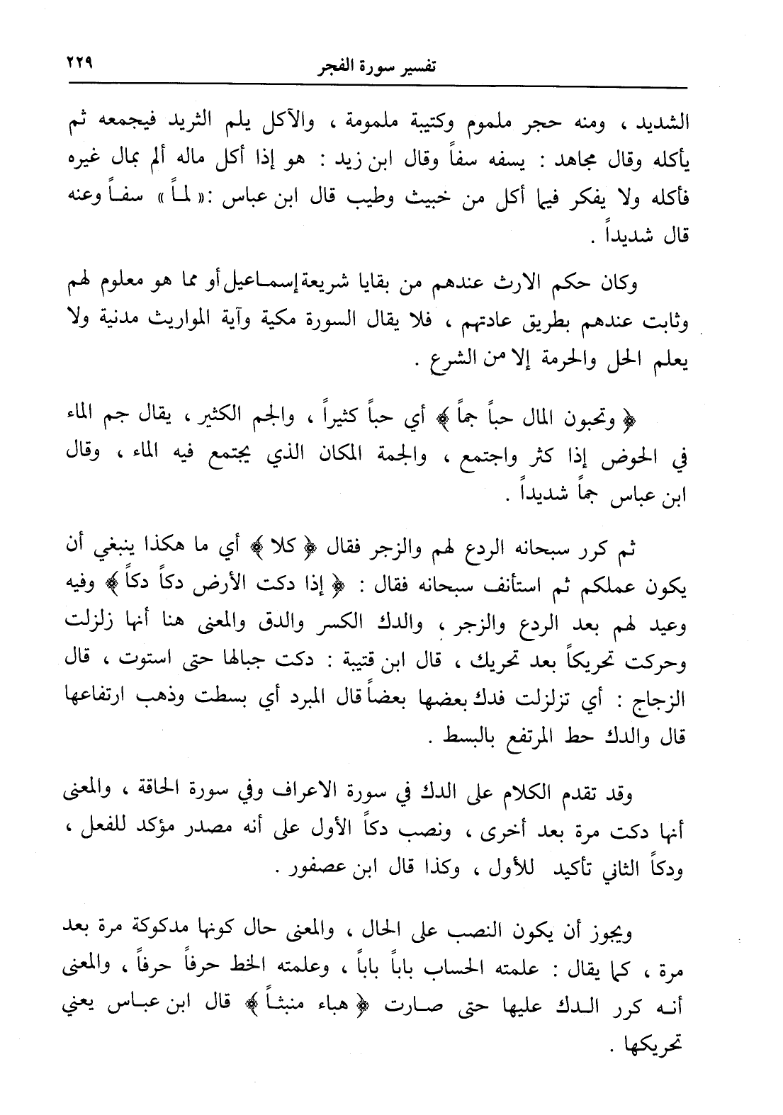 (وتحبون المال حباً جماً) أي حباً كثيراً، والجم الكثير، يقال جم الماء في الحوض إذا كثر واجتمع، والجمة المكان الذي يجتمع فيه الماء، وقال ابن عباس جماً شديداً.