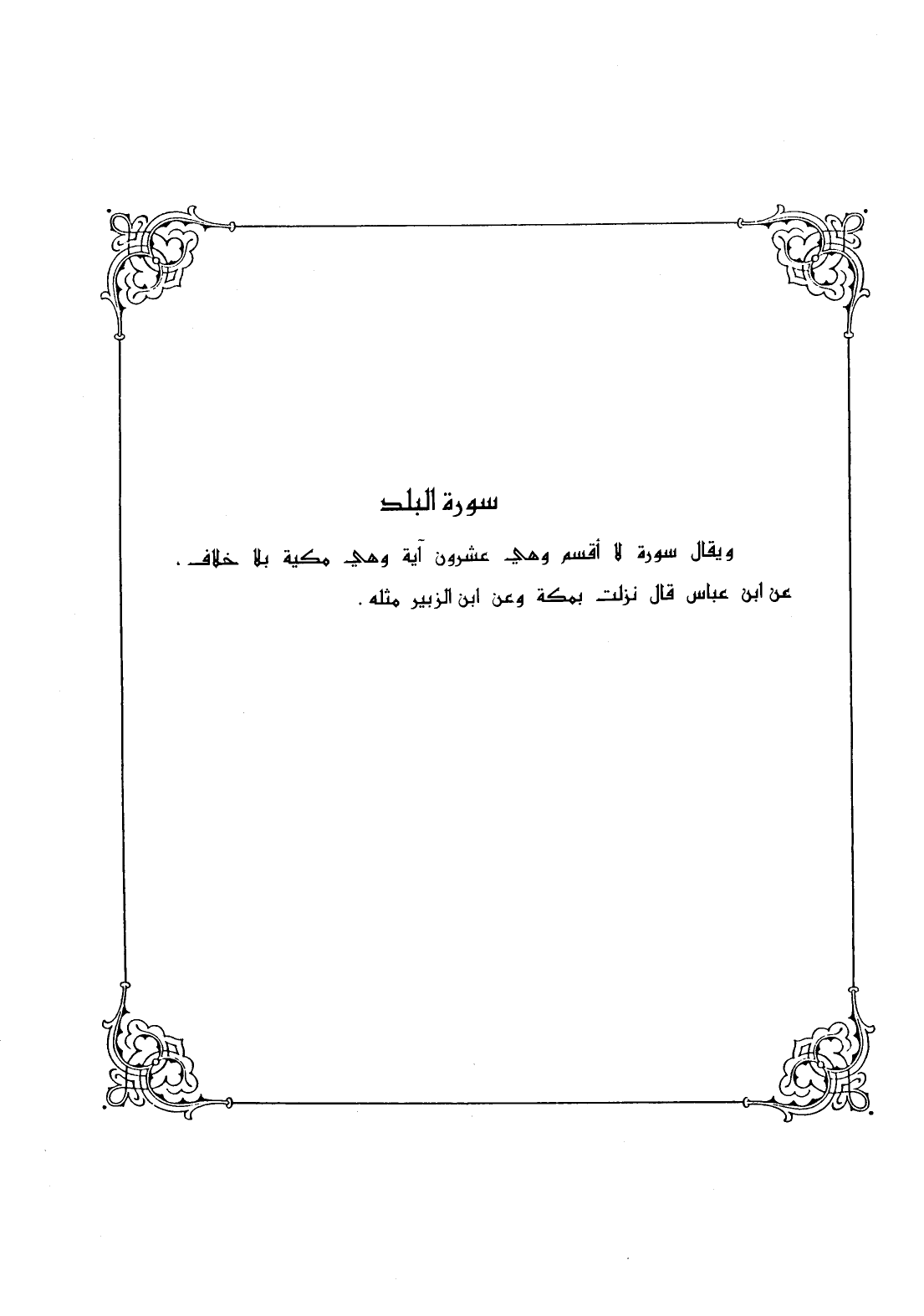 ويقال سورة لا أقسم وهي عشرون آية وهي مكية بلا خلاف، عن ابن عباس قال نزلت بمكة وعن ابن الزبير مثله.