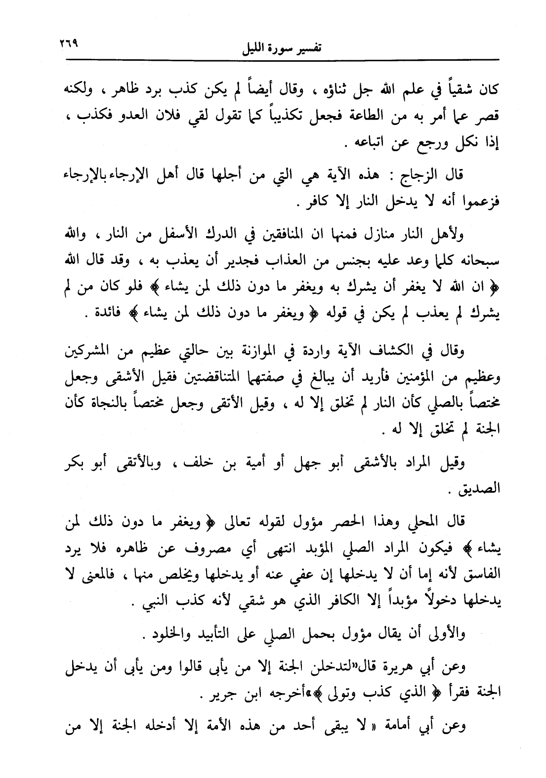وعن أبي هريرة قال " لتدخلن الجنة إلا من يأبى قالوا ومن يأبى أن يدخل الجنة فقرأ (الذي كذب وتولى) " أخرجه ابن جرير.