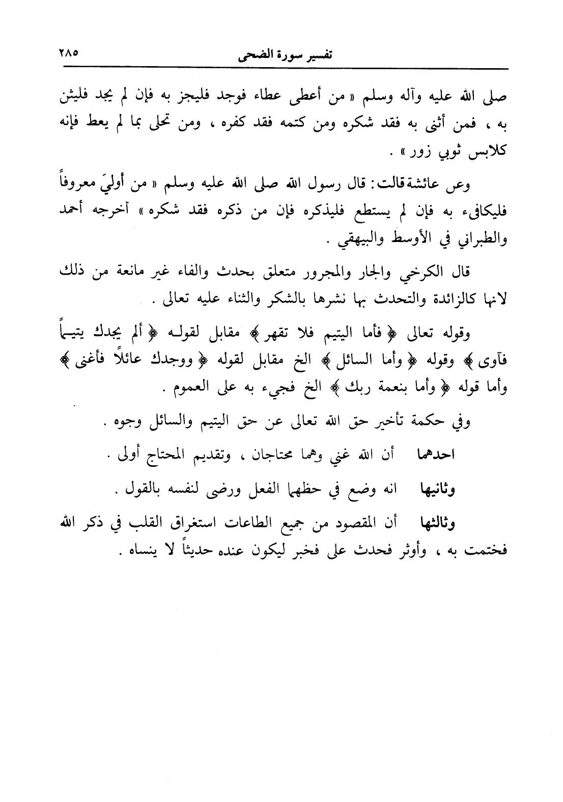 وقوله تعالى (فأما اليتيم فلا تقهر) مقابل لقوله (ألم يجدك يتيماً فآوى) وقوله (وأما السائل) الخ مقابل لقوله (ووجدك عائلاً فأغنى) وأما قوله (وأما بنعمة ربك) الخ فجيء به على العموم.