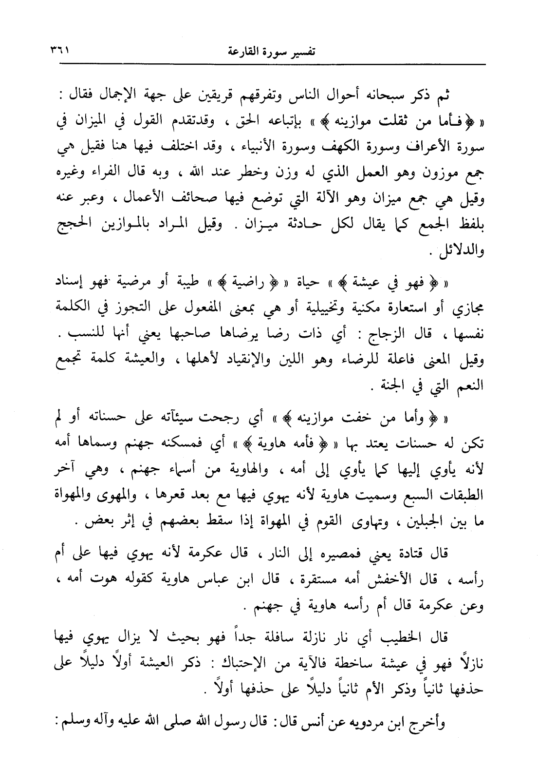 (فأما من ثقلت موازينه) " بإتباعه الحق، وقد تقدم القول في الميزان في سورة الأعراف وسورة الكهف وسورة الأنبياء، وقد اختلف فيها هنا فقيل هي جمع موزون وهو العمل الذي له وزن وخطر عند الله، وبه قال الفراء وغيره وقيل هي جمع ميزان وهو الآلة التي توضع فيها صحائف الأعمال، وعبر عنه بلفظ الجمع كما يقال لكل حادثة ميزان. وقيل المراد بالموازين الحجج والدلائل.