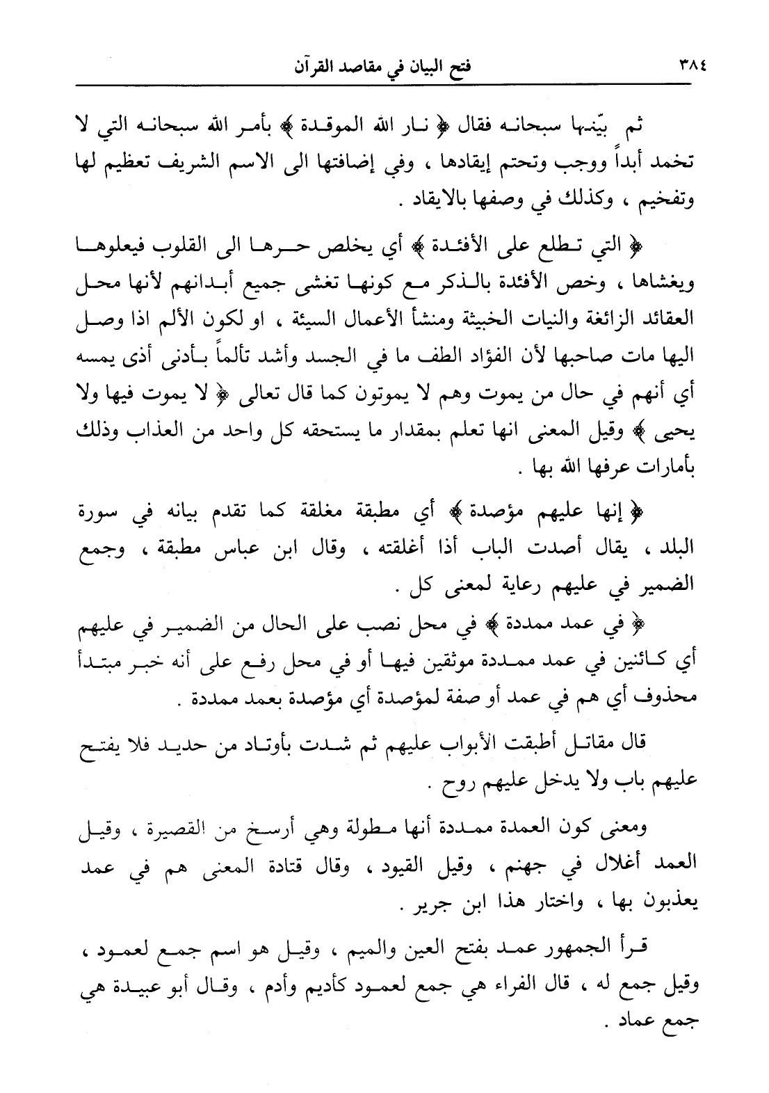 (نار الله الموقدة) بأمر الله سبحانه التي لا تخمد أبداً ووجب وتحتم إيقادها، وفي إضافتها إلى الاسم الشريف تعظيم لها وتفخيم، وكذلك في وصفها بالإيقاد.