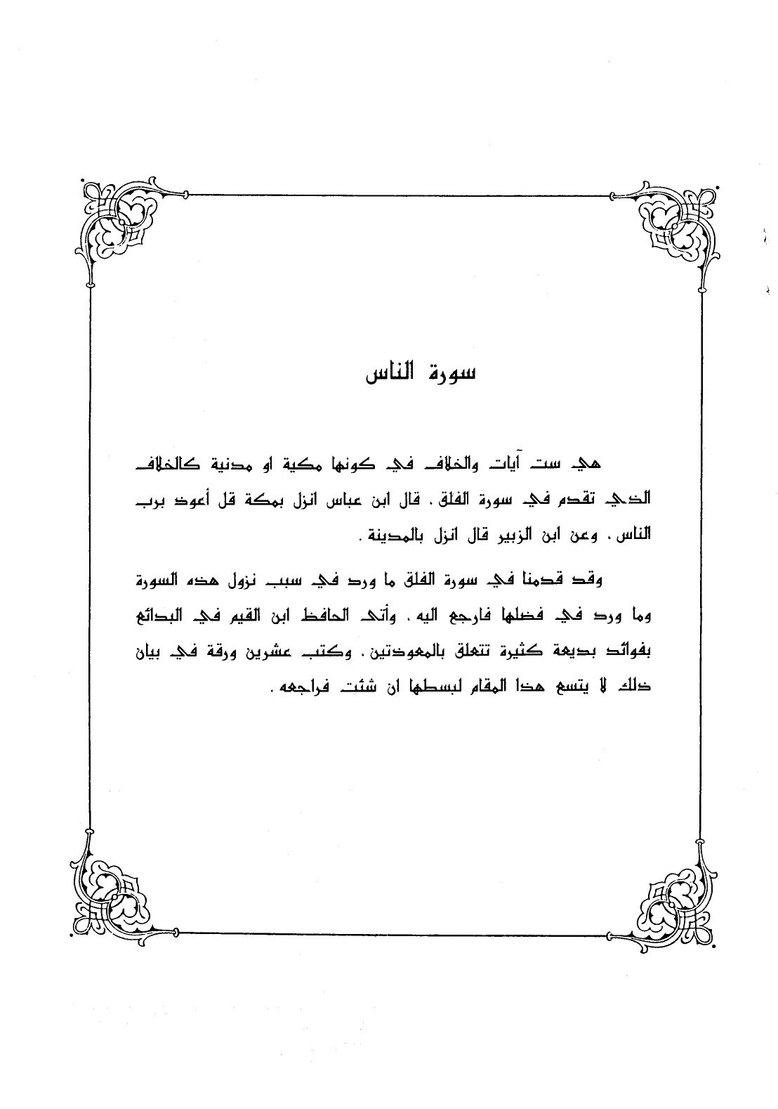 وقد قدمنا في سورة الفلق ما ورد في سبب نزول هذه السورة وما ورد في فضلها فارجع إليه، وأتى الحافظ ابن القيم في البدائع بفوائد بديعة كثيرة تتعلق بالمعوذتين، وكتب عشرين ورقة في بيان ذلك لا يتسع هذا المقام لبسطها إن شئت فراجعه.