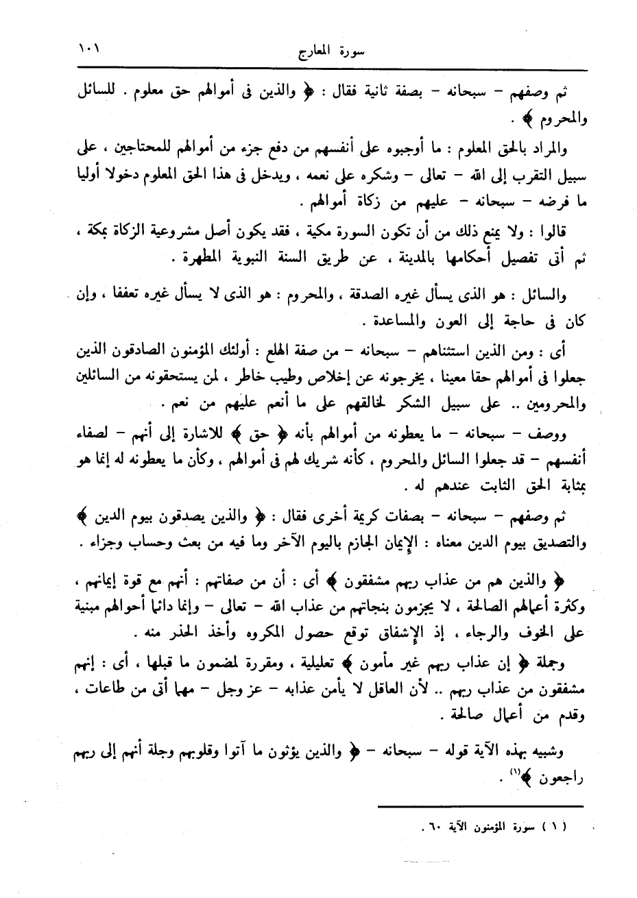 ثم وصفهم- سبحانه- بصفة ثانية فقال: وَالَّذِينَ فِي أَمْوالِهِمْ حَقٌّ مَعْلُومٌ. لِلسَّائِلِ وَالْمَحْرُومِ.