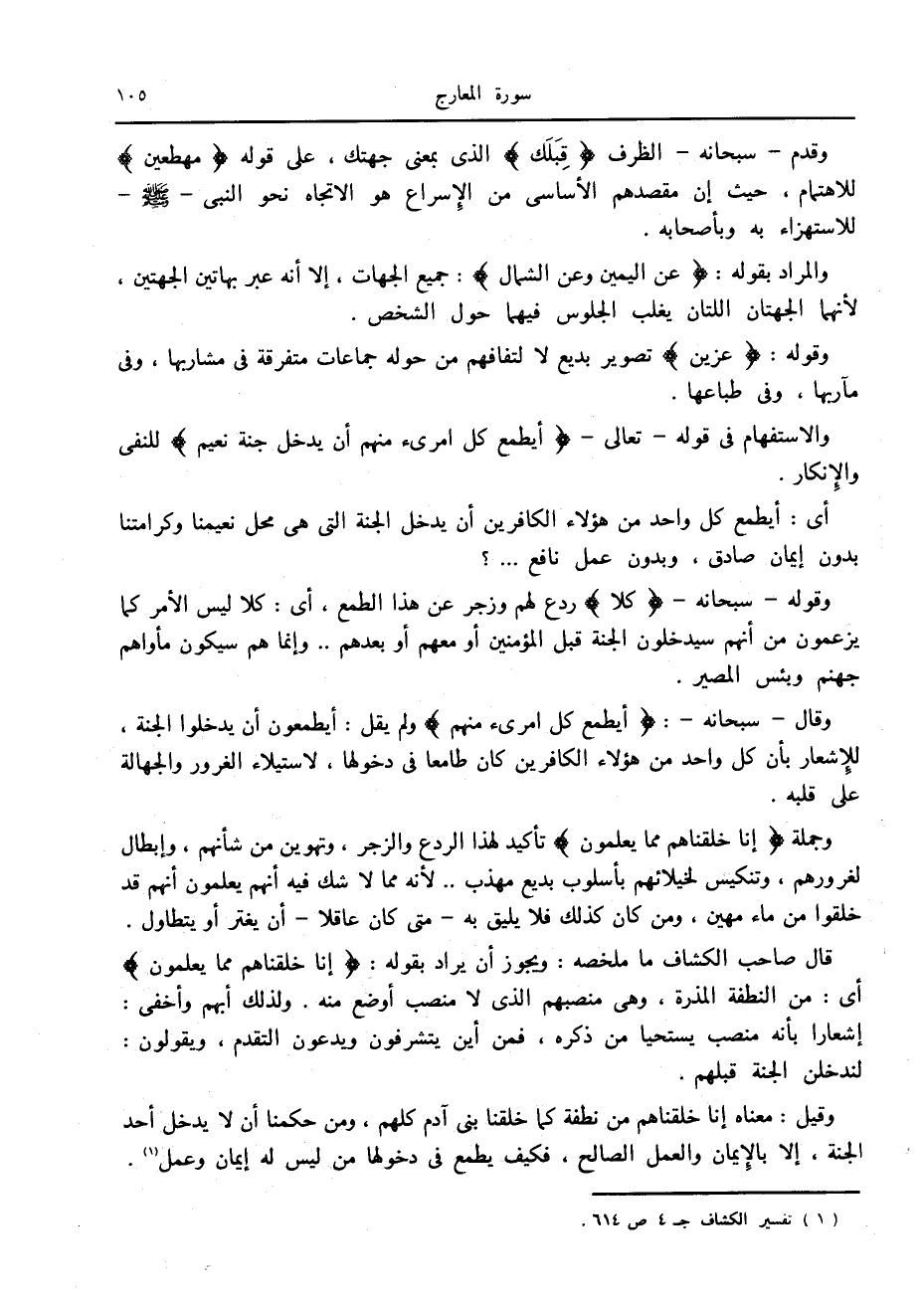 (1) تفسير الكشاف ج 4 ص 614.