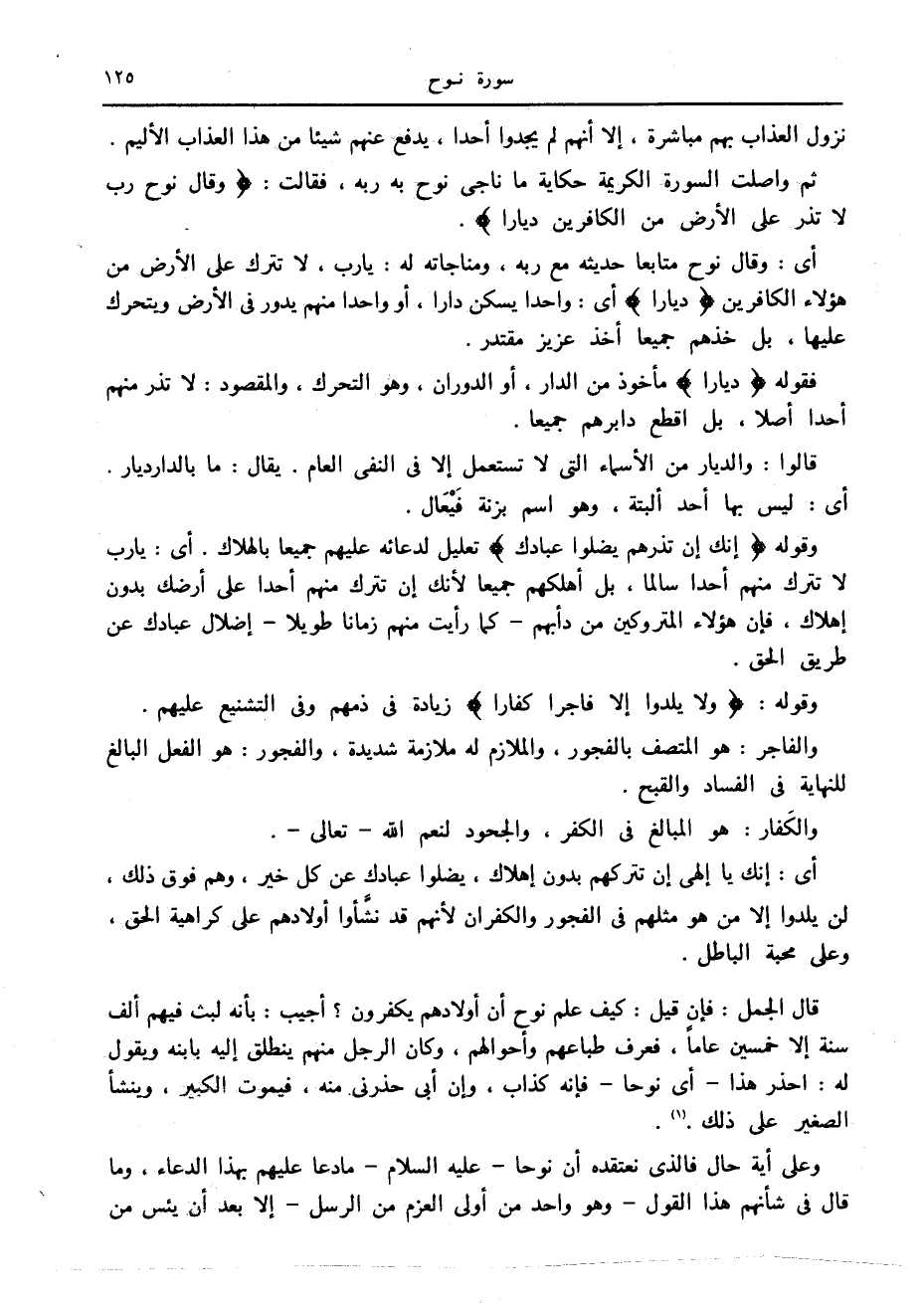 وعلى أية حال فالذي نعتقده أن نوحا- عليه السلام- ما دعا عليهم بهذا الدعاء، وما قال في شأنهم هذا القول- وهو واحد من أولى العزم من الرسل- إلا بعد أن يئس من