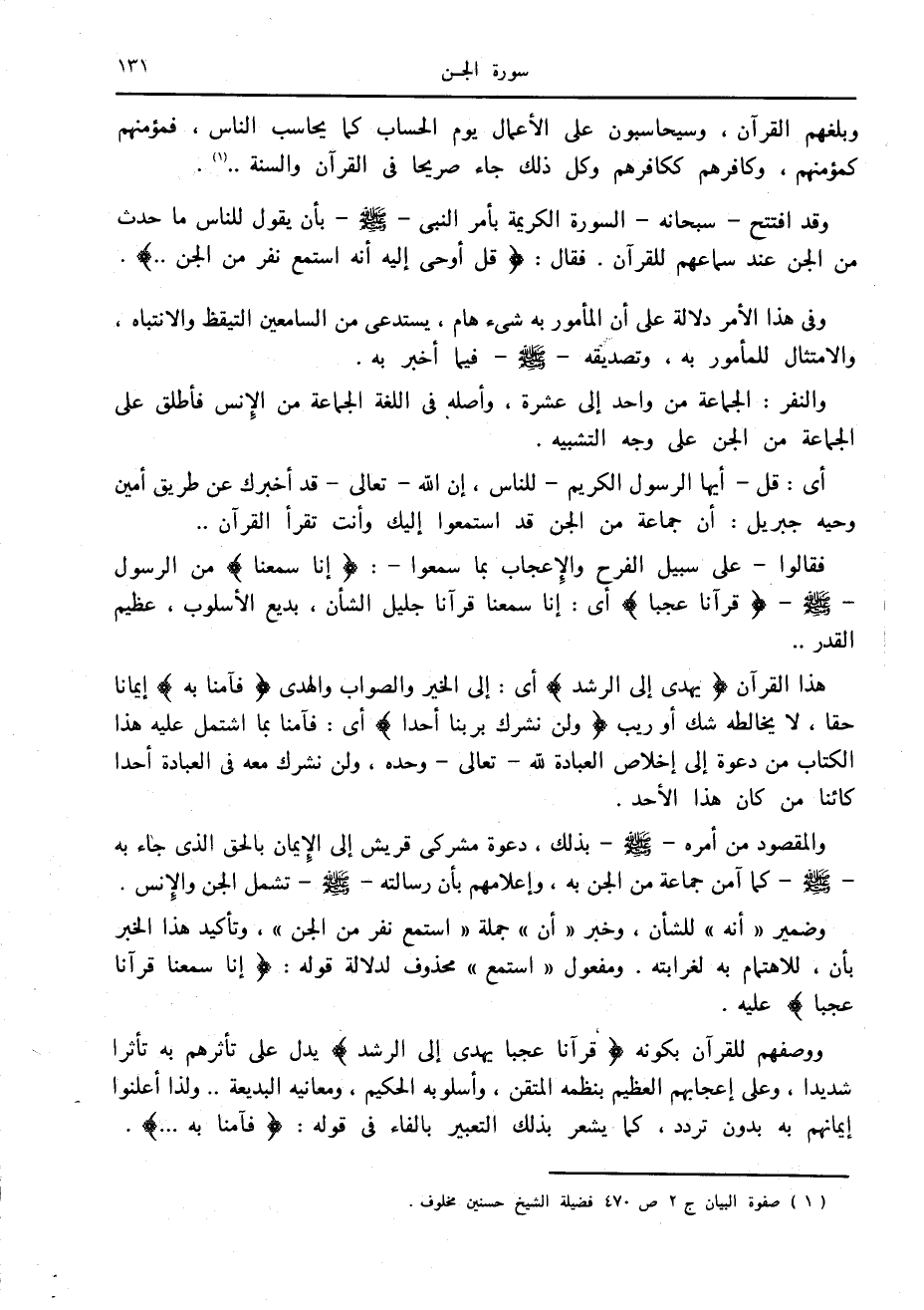 (1) صفوة البيان ج 2 ص 470 فضيلة الشيخ حسنين مخلوف.