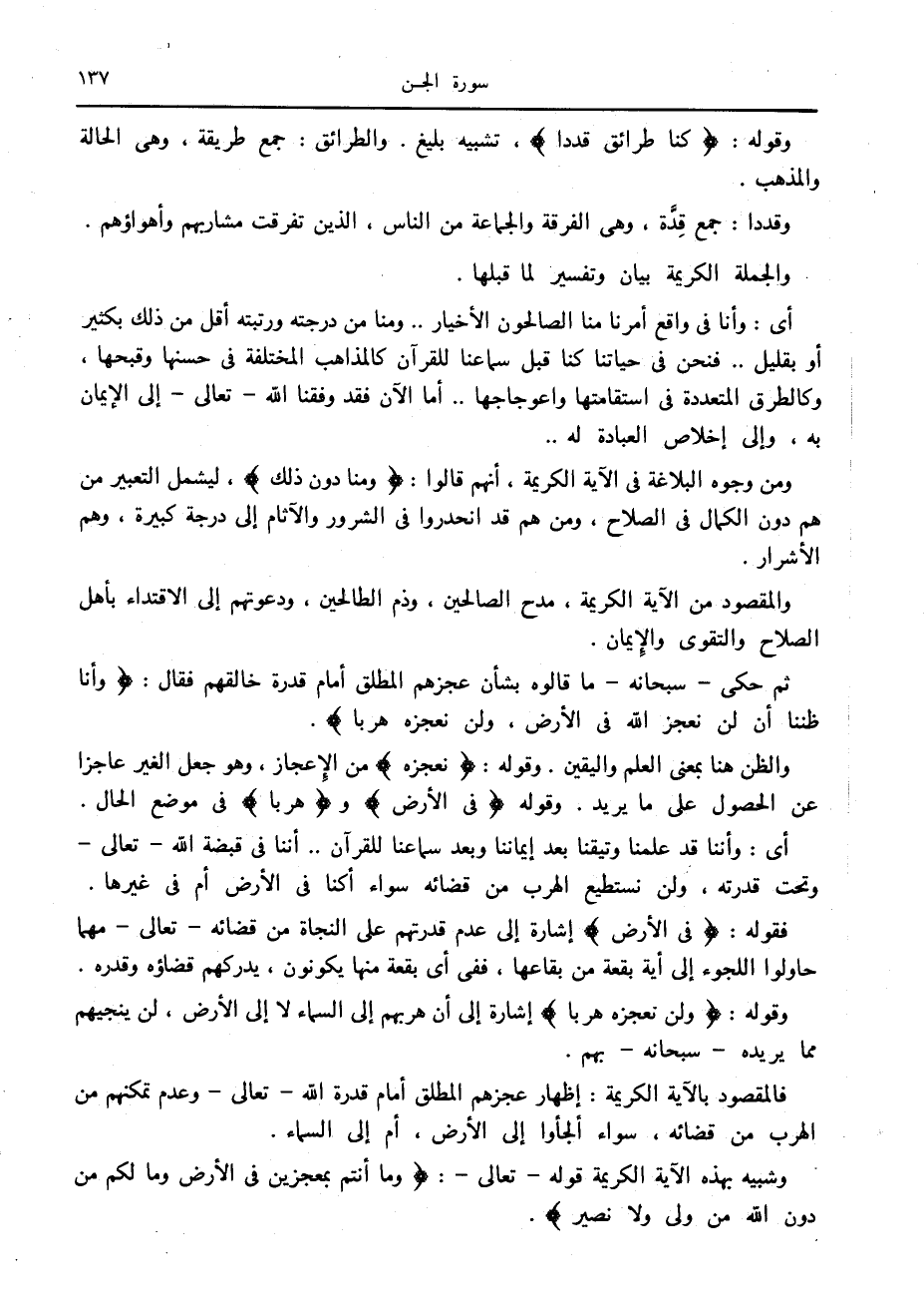 وقوله: كُنَّا طَرائِقَ قِدَداً، تشبيه بليغ. والطرائق: جمع طريقة، وهي الحالة والمذهب.