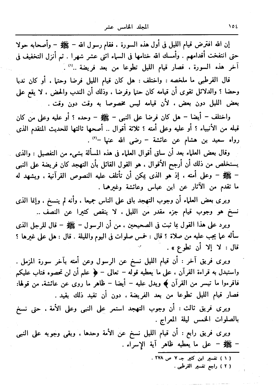 واستبدل به قراءة القرآن، على ما يعطيه قوله- تعالى- عَلِمَ أَنْ لَنْ تُحْصُوهُ فَتابَ عَلَيْكُمْ فَاقْرَؤُا ما تَيَسَّرَ مِنَ الْقُرْآنِ ويدل عليه- أيضا- ظاهر ما روى عن عائشة، من قولها:
