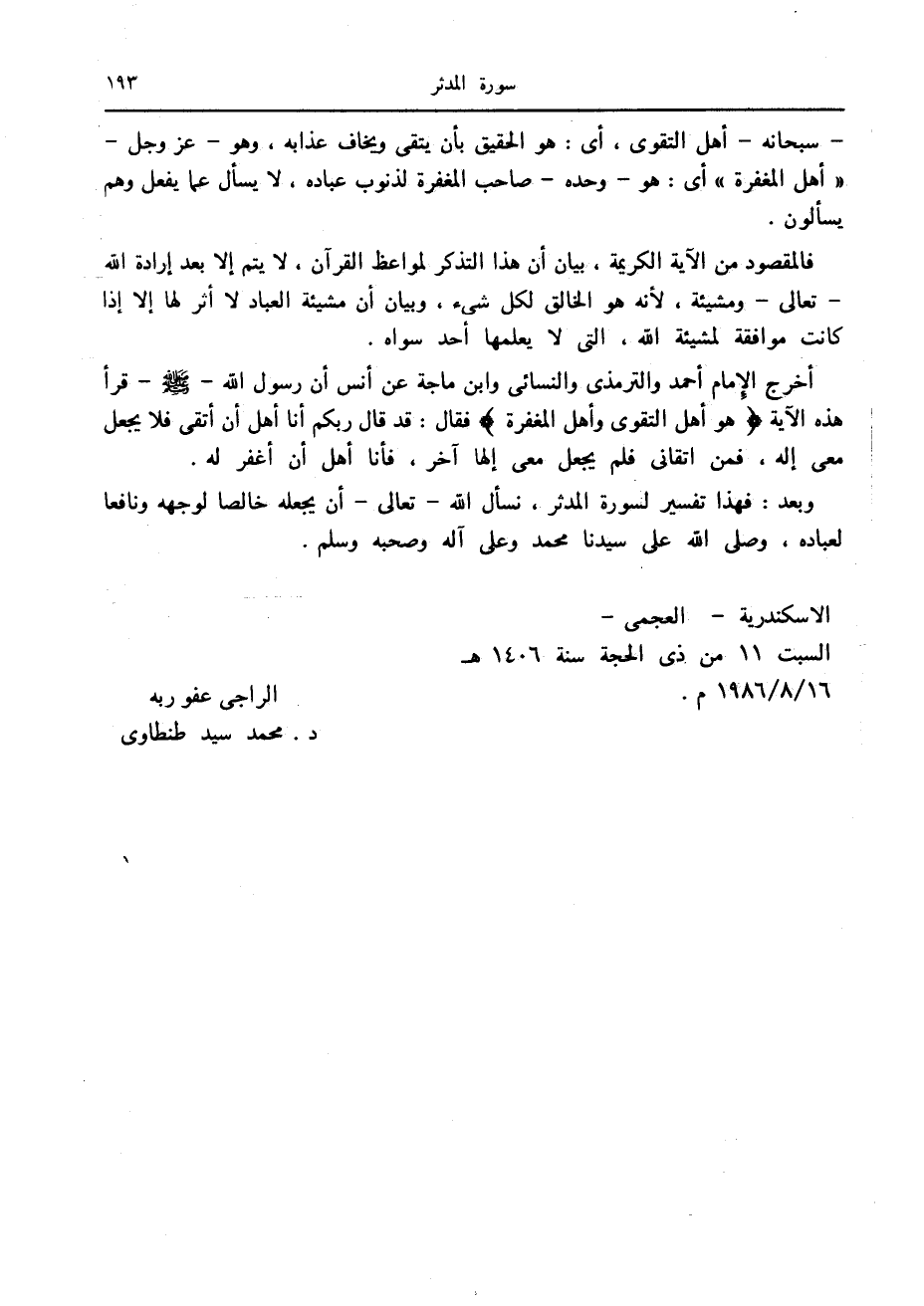 الراجي عفو ربه د. محمد سيد طنطاوى