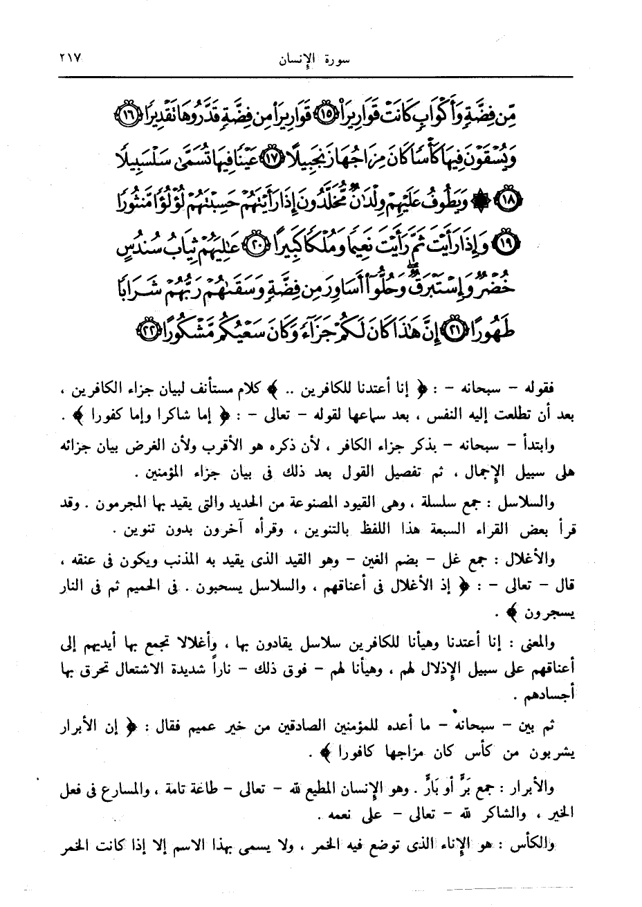 فقوله- سبحانه-: إِنَّا أَعْتَدْنا لِلْكافِرِينَ.. كلام مستأنف لبيان جزاء الكافرين، بعد أن تطلعت إليه النفس، بعد سماعها لقوله- تعالى-: إِمَّا شاكِراً وَإِمَّا كَفُوراً.