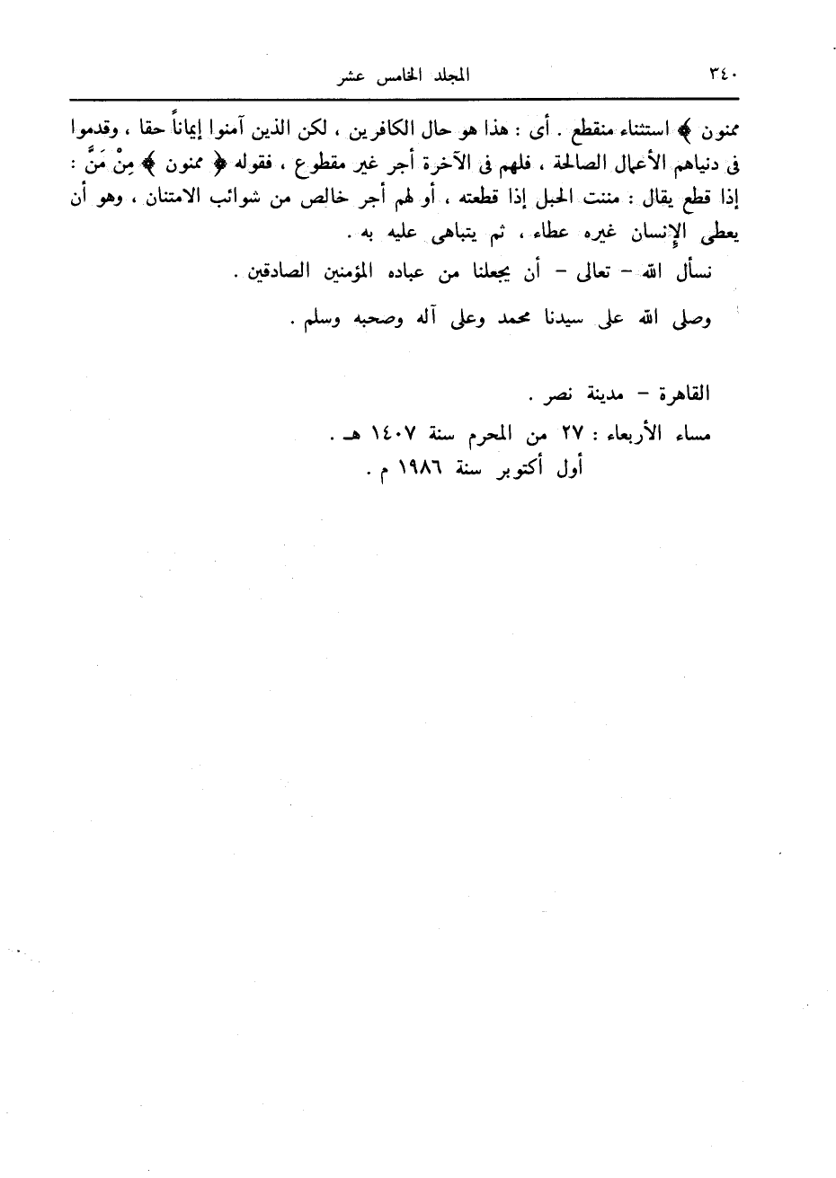 مَمْنُونٍ استثناء منقطع. أى: هذا هو حال الكافرين، لكن الذين آمنوا إيمانا حقا، وقدموا في دنياهم الأعمال الصالحة، فلهم في الآخرة أجر غير مقطوع، فقوله مَمْنُونٍ من منّ: