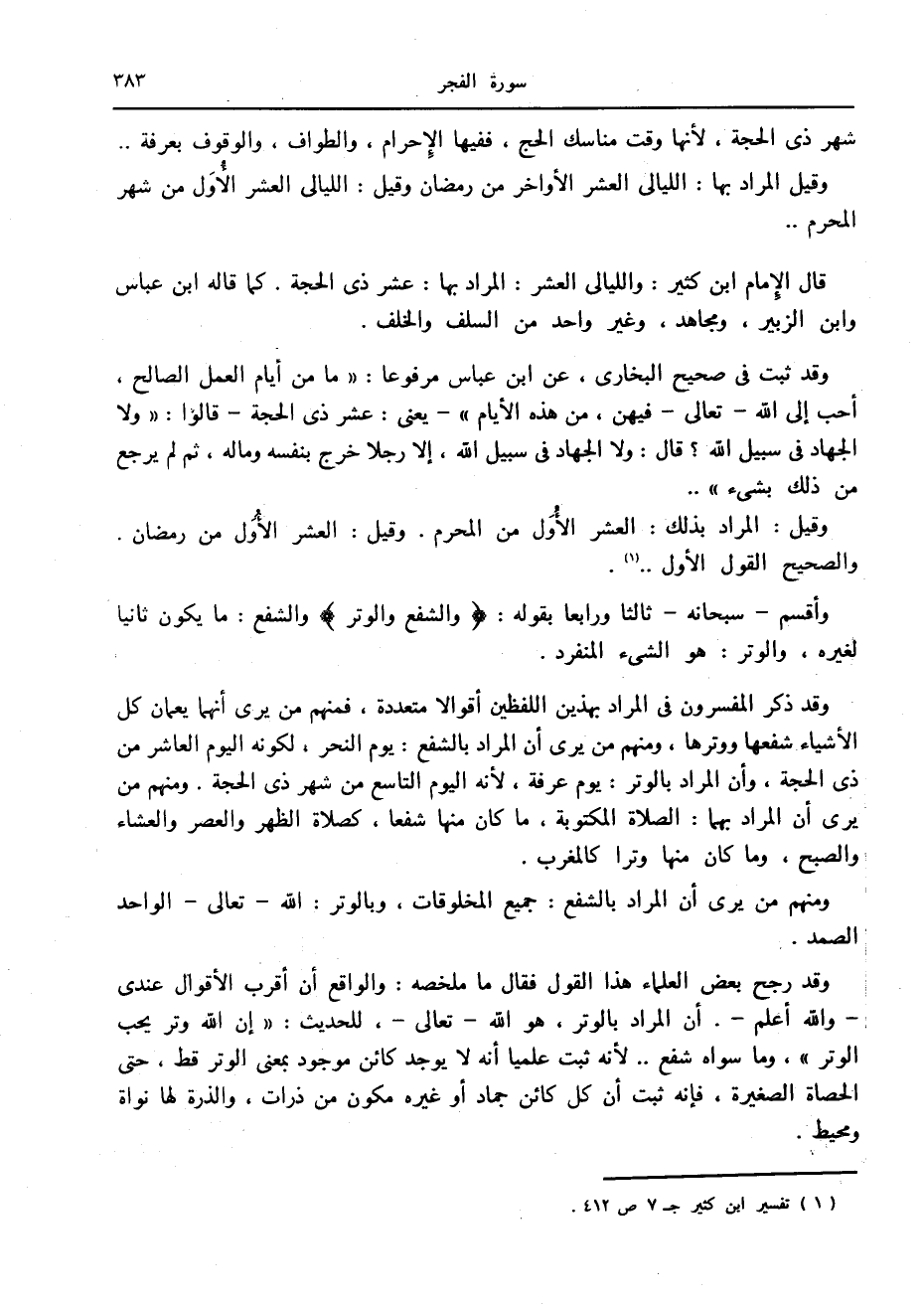 قال الإمام ابن كثير: والليالى العشر: المراد بها: عشر ذي الحجة. كما قاله ابن عباس وابن الزبير، ومجاهد، وغير واحد من السلف والخلف.