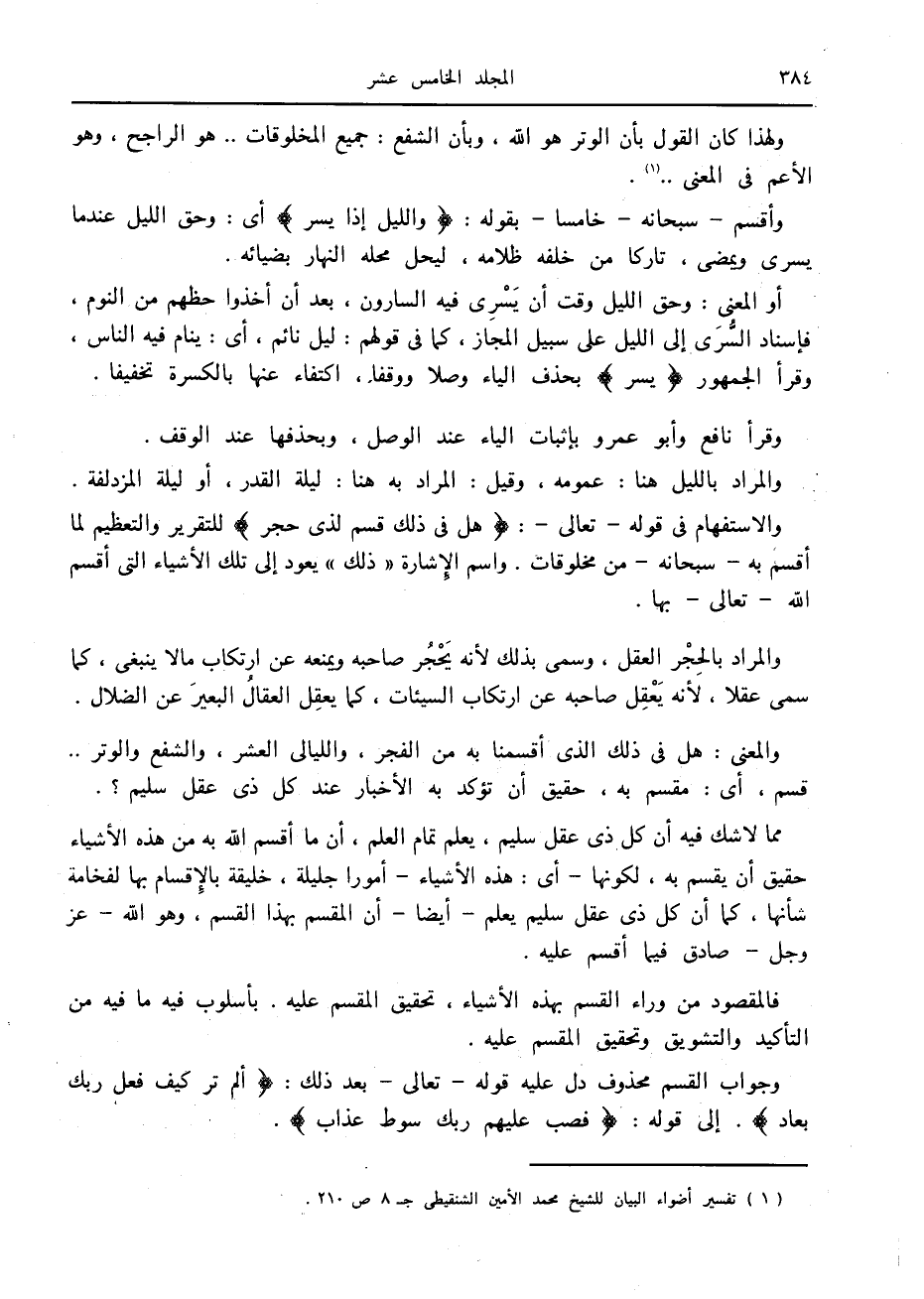 (1) تفسير أضواء البيان للشيخ محمد الأمين الشنقيطى ج 8 ص 210.