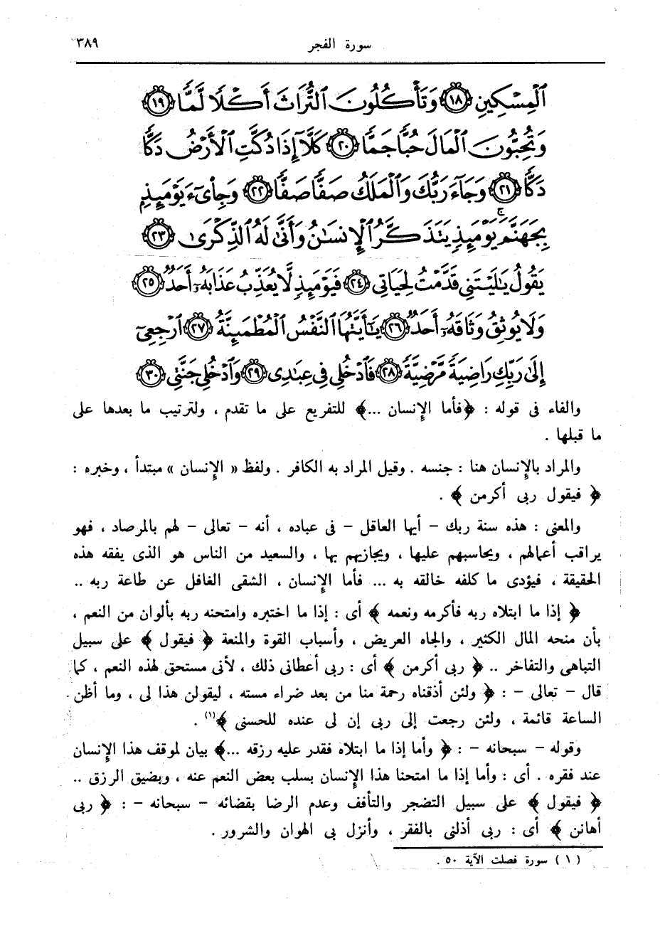 إِذا مَا ابْتَلاهُ رَبُّهُ فَأَكْرَمَهُ وَنَعَّمَهُ أى: إذا ما اختبره وامتحنه ربه بألوان من النعم، بأن منحه المال الكثير، والجاه العريض، وأسباب القوة والمنعة فَيَقُولُ على سبيل التباهي والتفاخر.. رَبِّي أَكْرَمَنِ أى: ربي أعطانى ذلك، لأنى مستحق لهذه النعم، كما قال- تعالى-: وَلَئِنْ أَذَقْناهُ رَحْمَةً مِنَّا مِنْ بَعْدِ ضَرَّاءَ مَسَّتْهُ، لَيَقُولَنَّ هذا لِي، وَما أَظُنُّ السَّاعَةَ قائِمَةً، وَلَئِنْ رُجِعْتُ إِلى رَبِّي إِنَّ لِي عِنْدَهُ لَلْحُسْنى «1» .
