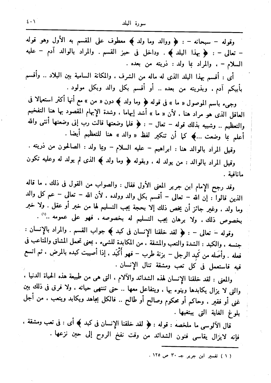 وقد رجح الإمام ابن جرير المعنى الأول فقال: والصواب من القول في ذلك، ما قاله الذين قالوا: إن الله- تعالى- أقسم بكل والد وولده، لأن الله- تعالى- عم كل والد وما ولد، وغير جائز أن يخص ذلك إلا بحجة يجب التسليم لها من خبر أو عقل. ولا خبر بخصوص ذلك، ولا برهان يجب التسليم له بخصوصه، فهو على عمومه.. «1» .