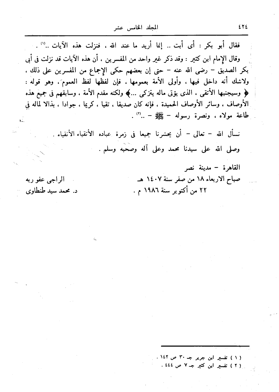 فقال أبو بكر: أى أبت.. إنما أريد ما عند الله، فنزلت هذه الآيات.. «1» .