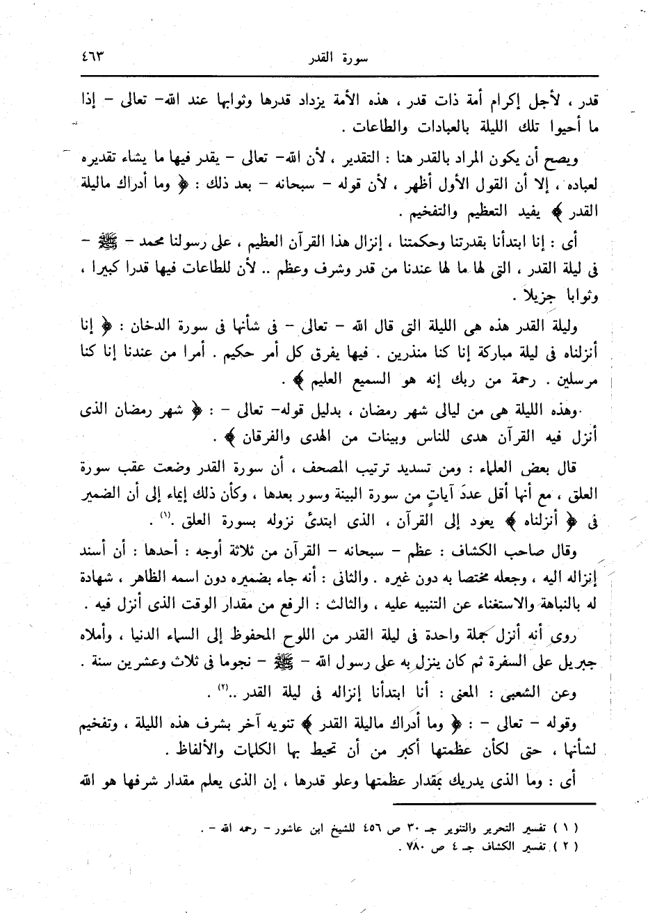 (1) تفسير التحرير والتنوير ج 30 ص 456 للشيخ ابن عاشور- رحمه الله-.