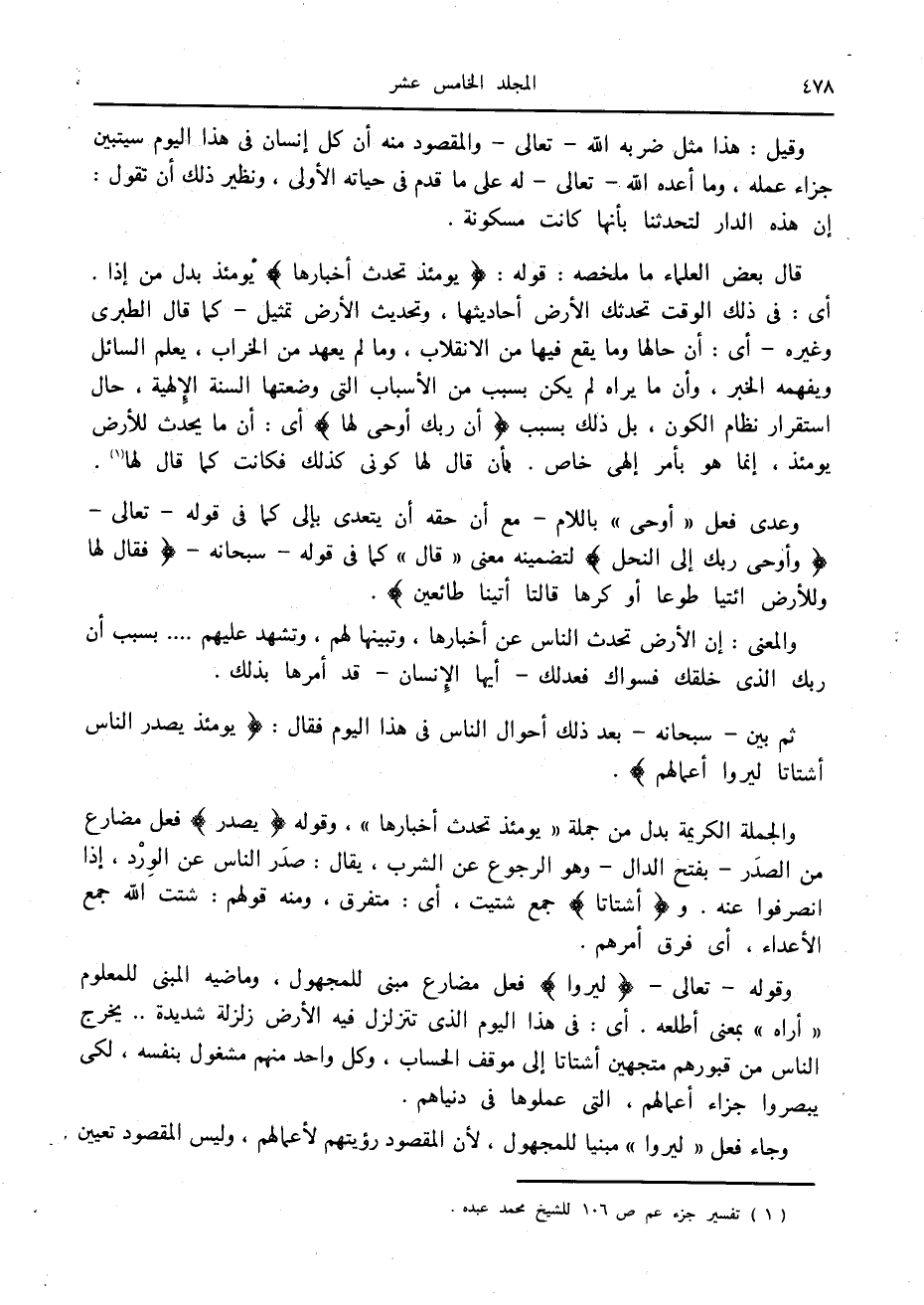 (1) تفسير جزء عم ص 106 للشيخ محمد عبده.