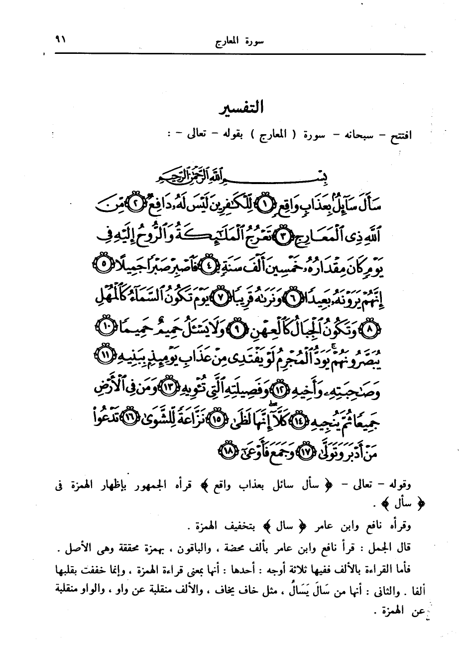 التفسير افتتح- سبحانه- سورة (المعارج) بقوله- تعالى-: