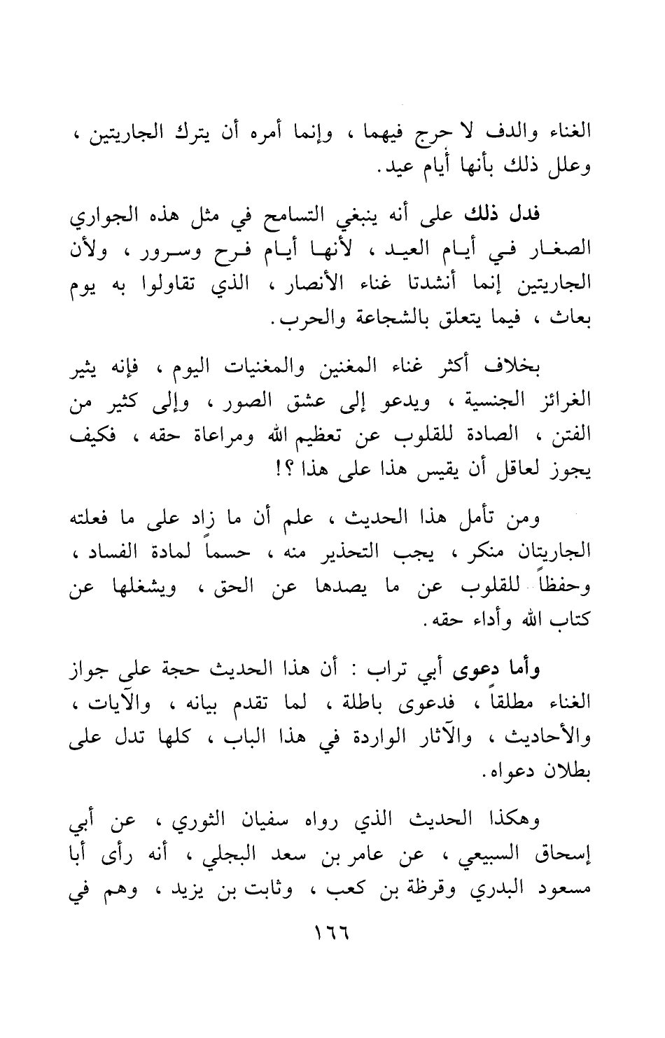 وأما دعوى أبي تراب أن هذا الحديث حجة على جواز الغناء مطلقا، فدعوى باطلة، لما تقدم بيانه؛ والآيات، والأحاديث، والآثار الواردة في هذا الباب، كلها تدل على بطلان دعواه.