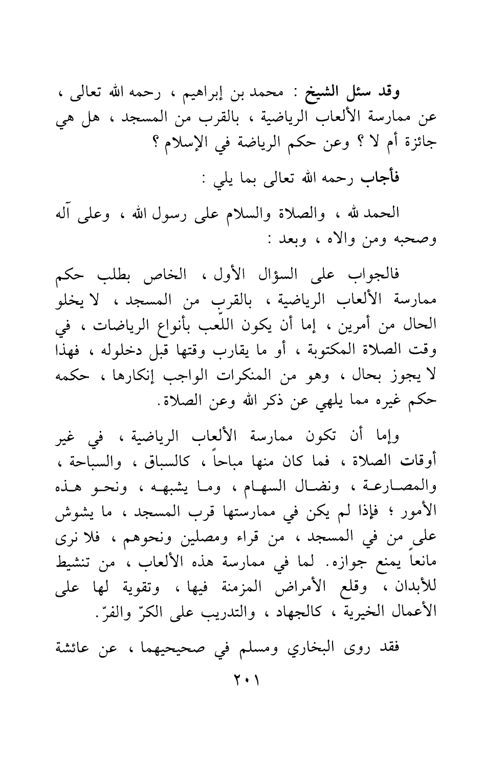 [جواب الشيخ محمد بن إبراهيم عن ممارسة الألعاب الرياضية]